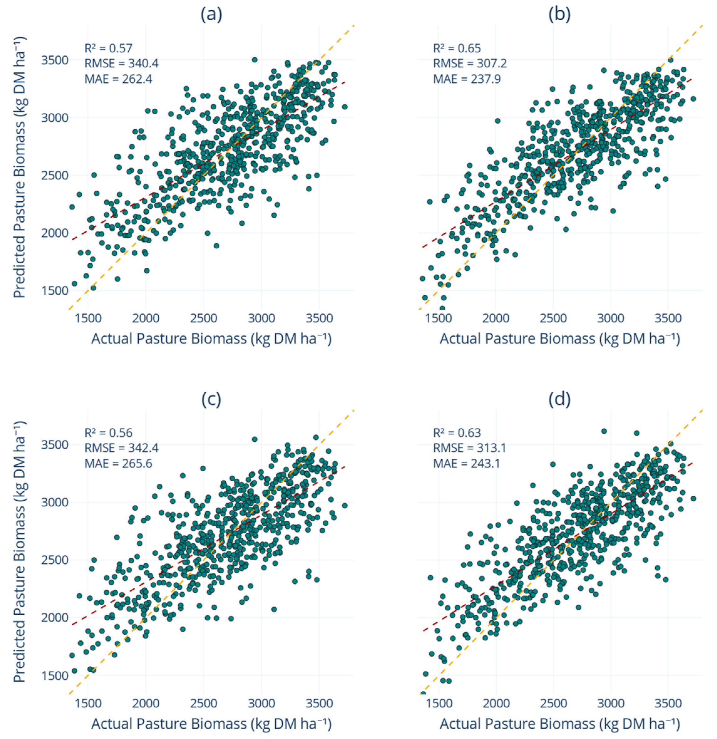 2.4. Predictive Modelling for Pasture Biomass