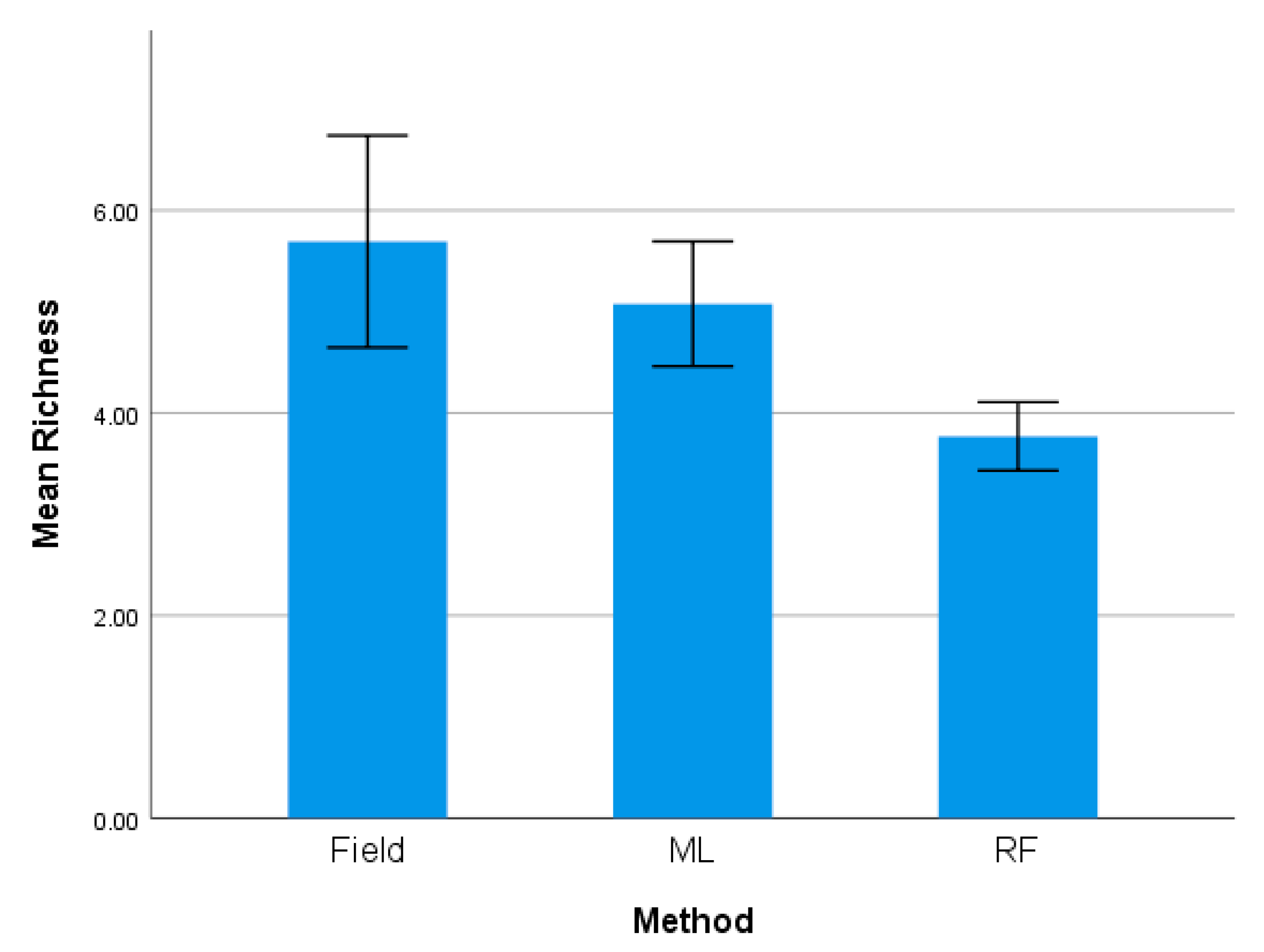 6]. However, this is not always possible, and strategies must be taken post hoc to enable datasets for comparison. Our study fell into the latter scenario, and comparison of species was limited to those in common between the field survey data and those that could be classified using the remotely sensed data. This made sense from a comparative standpoint but left some species out of the assessment altogether. In cases where time and resources allow, early field reconnaissance, communication with local practitioners, and reviewing previous monitoring reports can provide guidance on selecting target species. This is valuable not only for comparing or integrating field and remote sensing data and methods, but also to ensure that the target species are relevant to restoration monitoring needs. Even still, some species are not possible or are too challenging to identify via remote sensing, and tradeoffs must be weighed relative to restoration monitoring needs to determine a suitable identification method [