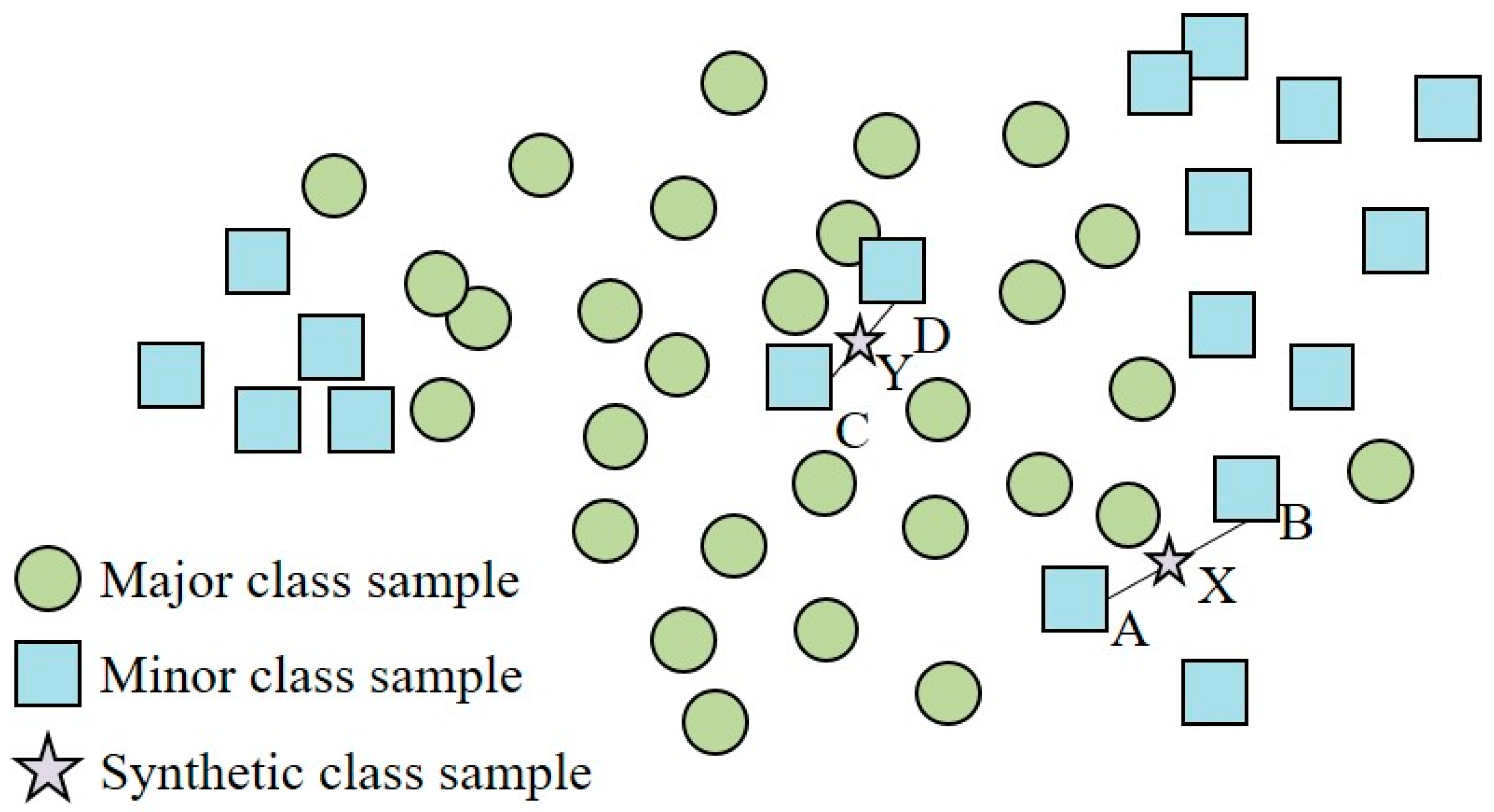 - He, H.; Bai, Y.; Garcia, E.A.; Li, S. ADASYN: Adaptive synthetic sampling approach for imbalanced learning. In Proceedings of the 2008 IEEE International Joint Conference on Neural Networks (IEEE World Congress on Computational Intelligence), Hong Kong, China, 1–8 June 2008; pp. 1322–1328. [Google Scholar]