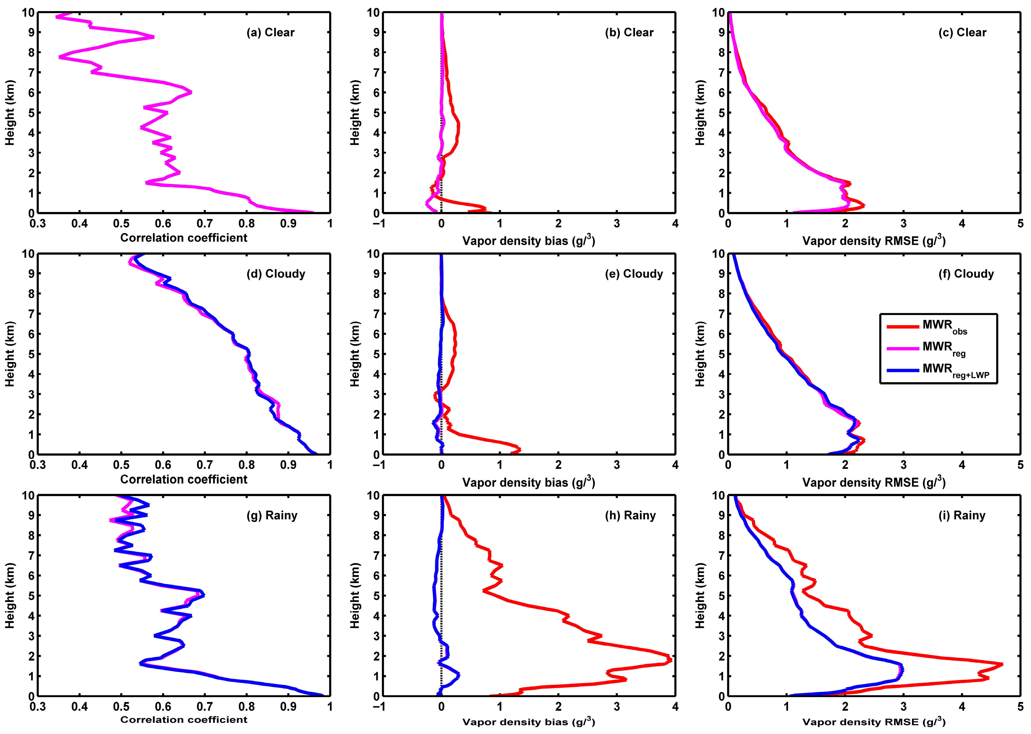 - Li, Q.; Wei, M.; Wang, Z.; Chu, Y. Evaluation and improvement of the quality of ground-based microwave radiometer clear-sky data. Atmosphere 2021, 12, 435. [Google Scholar] [CrossRef]