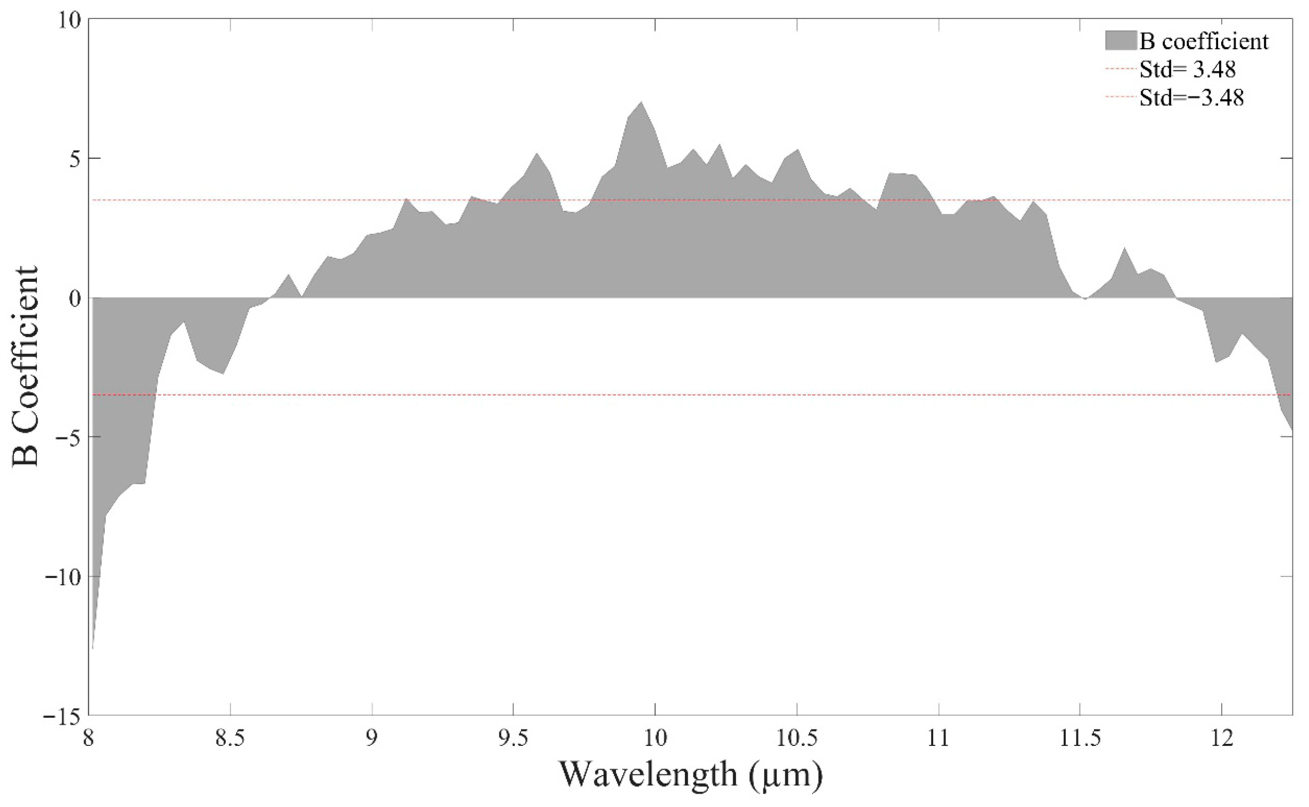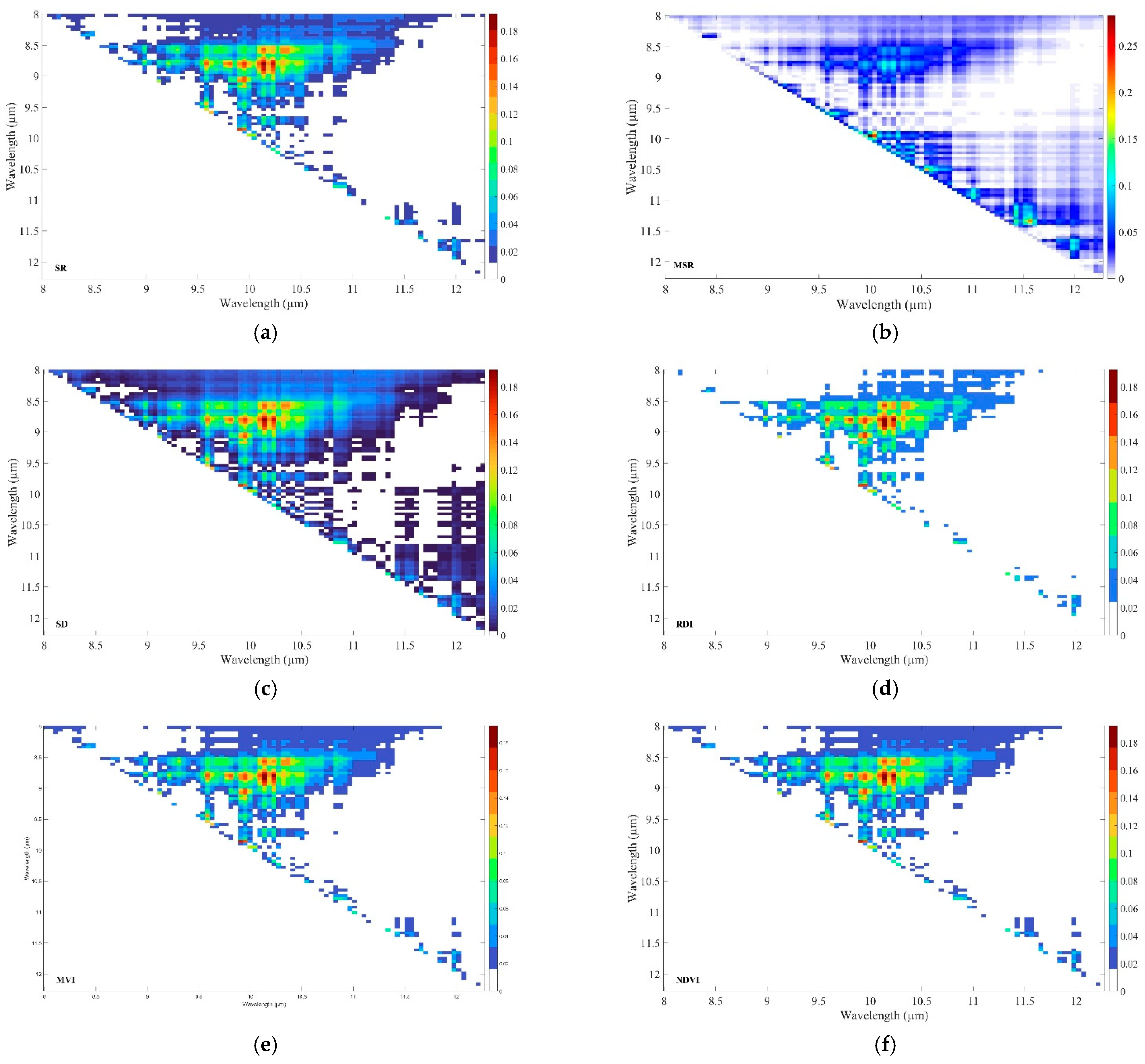 | NDVI | 8.79 µm and 10.13 µm | 0.19 | 0.007 |