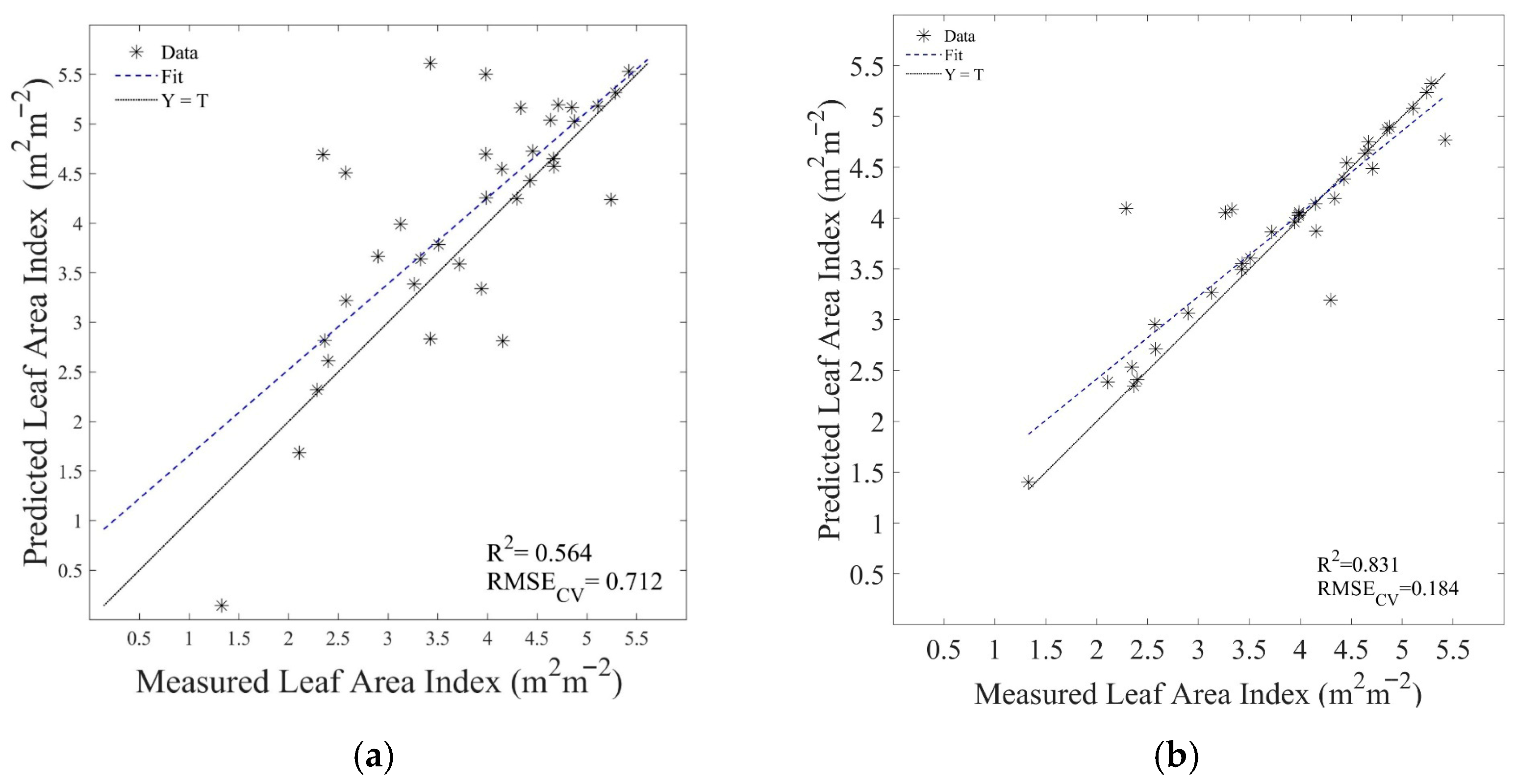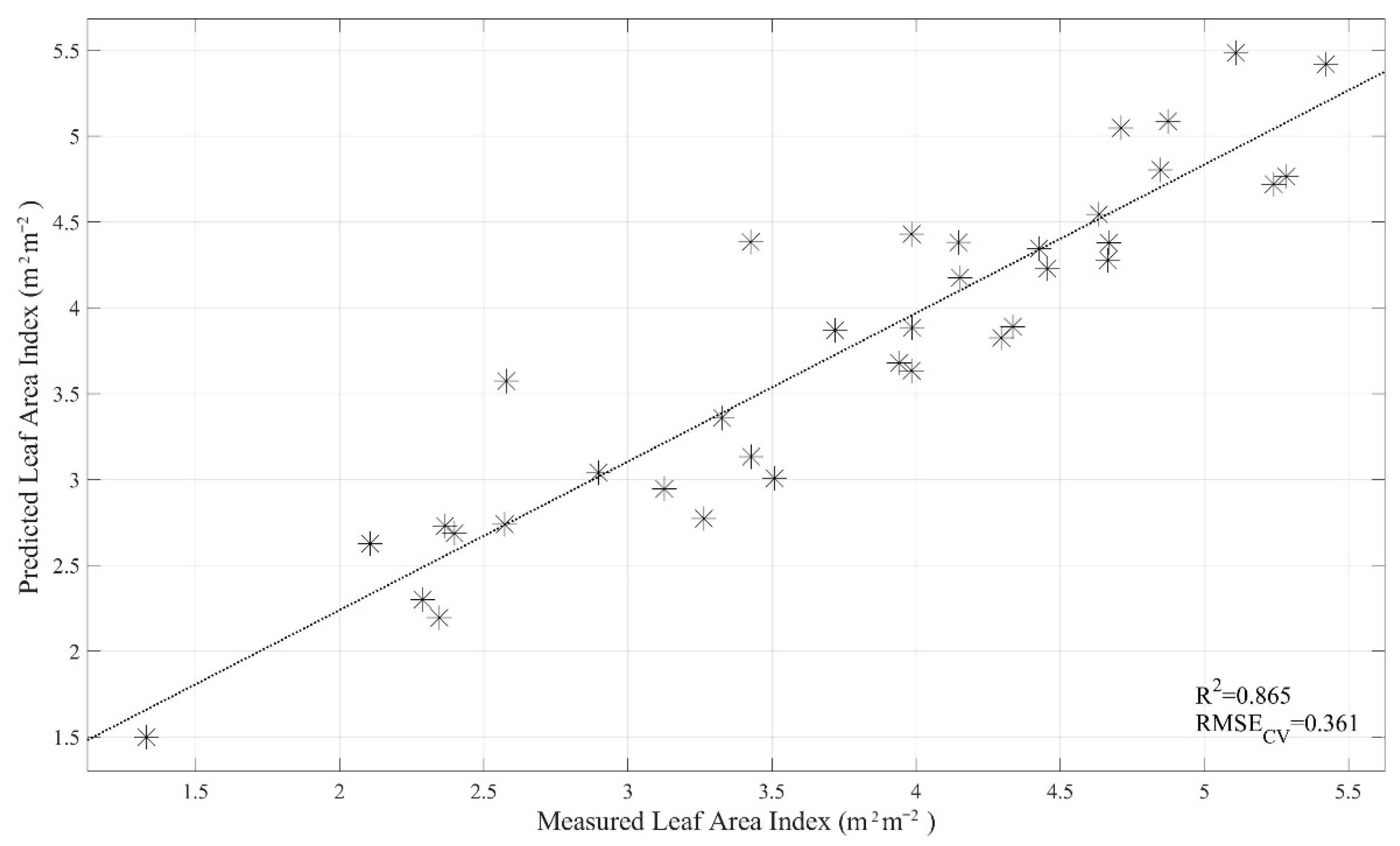 3.2. Estimation of Leaf Area Index Using Partial Least Squares Regression