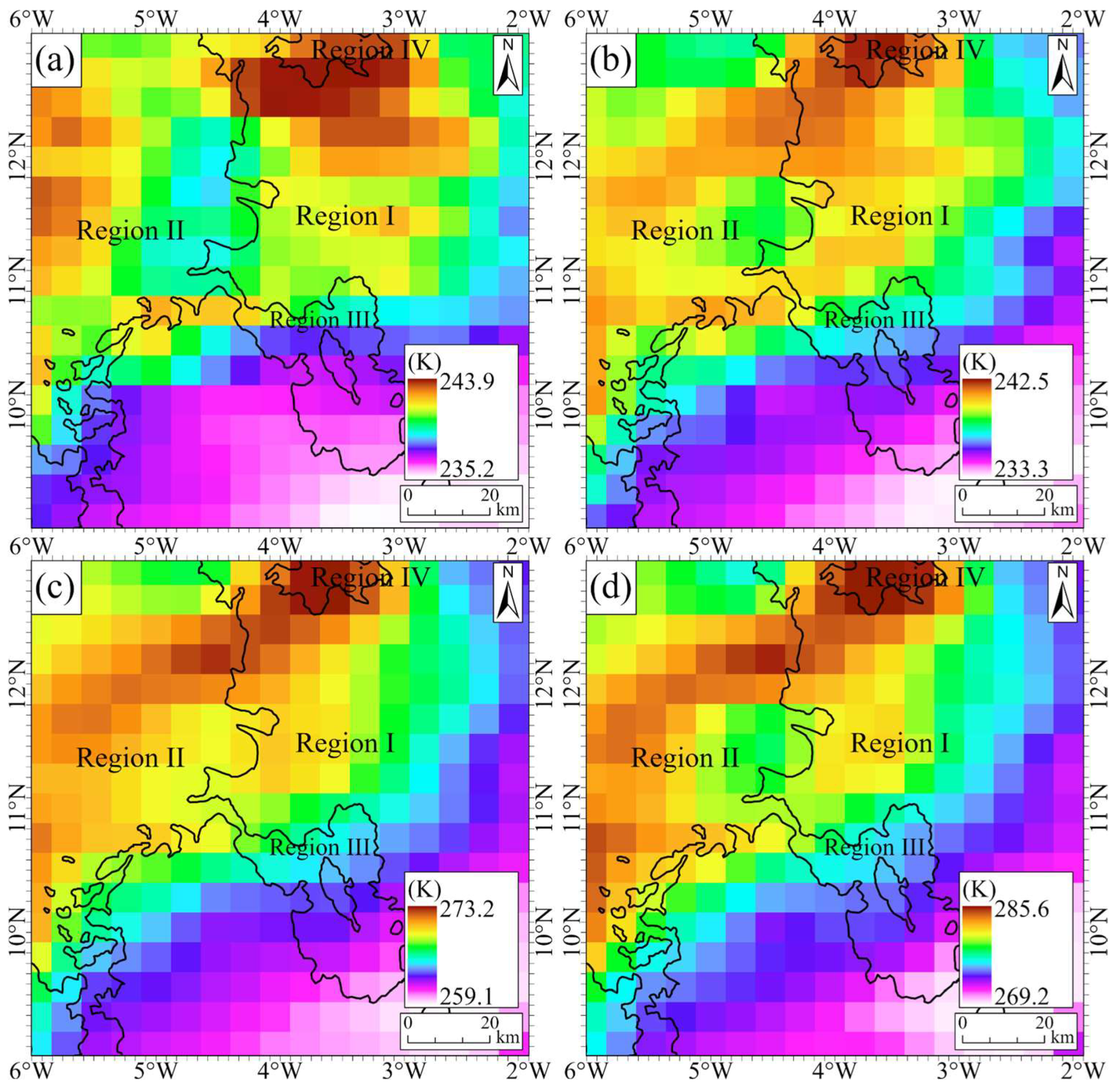 - Zheng, Y.-C.; Chan, K.L.; Tsang, K.T.; Zhu, Y.-C.; Hu, G.P.; Blewett, D.T.; Neish, C. Analysis of Chang’E-2 Brightness Temperature Data and Production of High Spatial Resolution Microwave Maps of the Moon. Icarus 2019, 319, 627–644. [Google Scholar] [CrossRef]
