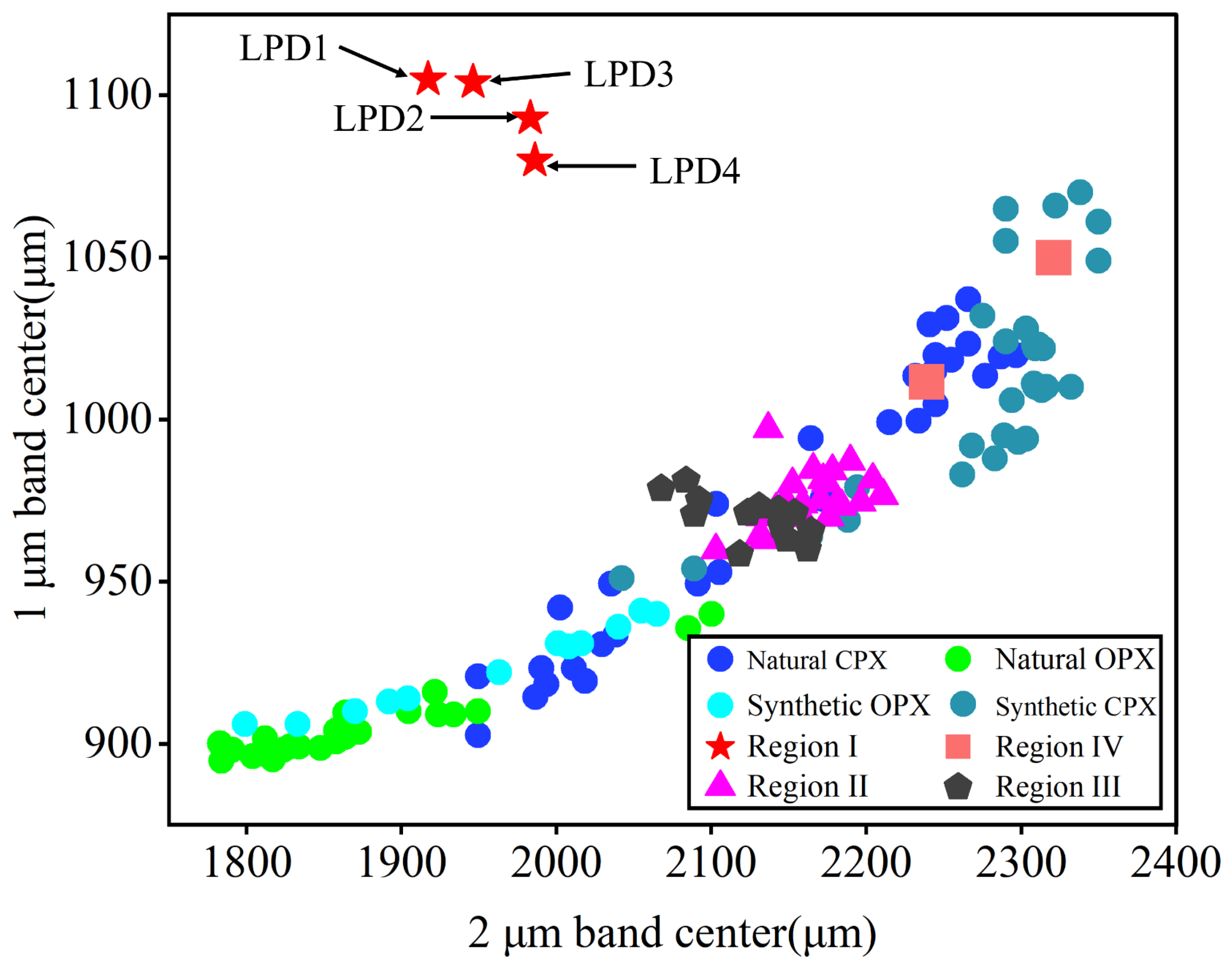 - Moriarty, D.P., III.; Pieters, C.M. Complexities in Pyroxene Compositions Derived from Absorption Band Centers: Examples from Apollo Samples, HED Meteorites, Synthetic Pure Pyroxenes, and Remote Sensing Data. Meteorit. Planet. Sci. 2016, 51, 207–234. [Google Scholar] [CrossRef]