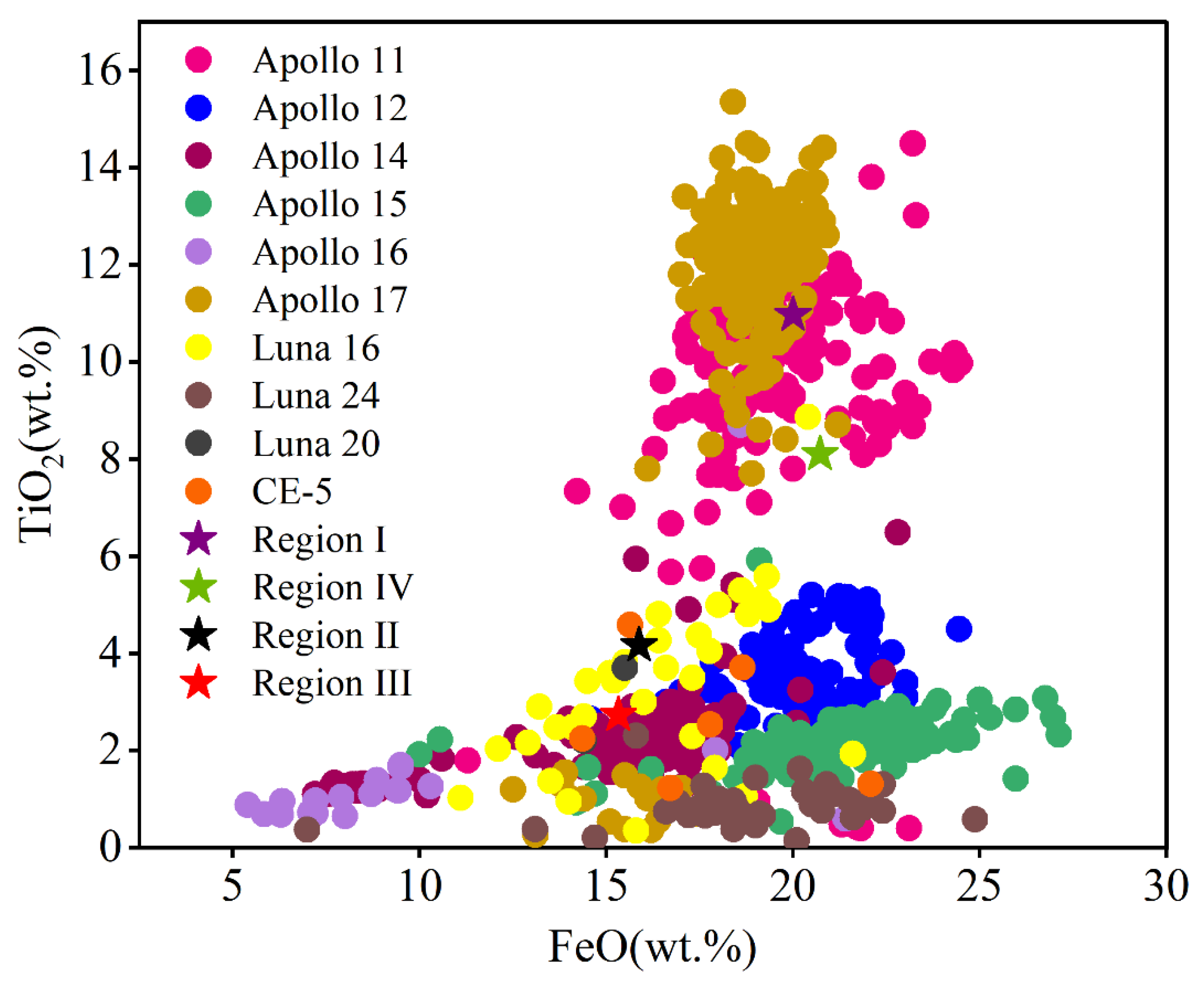 - Zhao, Z.; Chen, J.; Ling, Z.; Lu, X.; Li, Z. Chronology, Composition, and Mineralogy of Mare Basalts in the Junction of Oceanus Procellarum, Mare Imbrium, Mare Insularum, and Mare Vaporum. Icarus 2023, 397, 115531. [Google Scholar] [CrossRef]