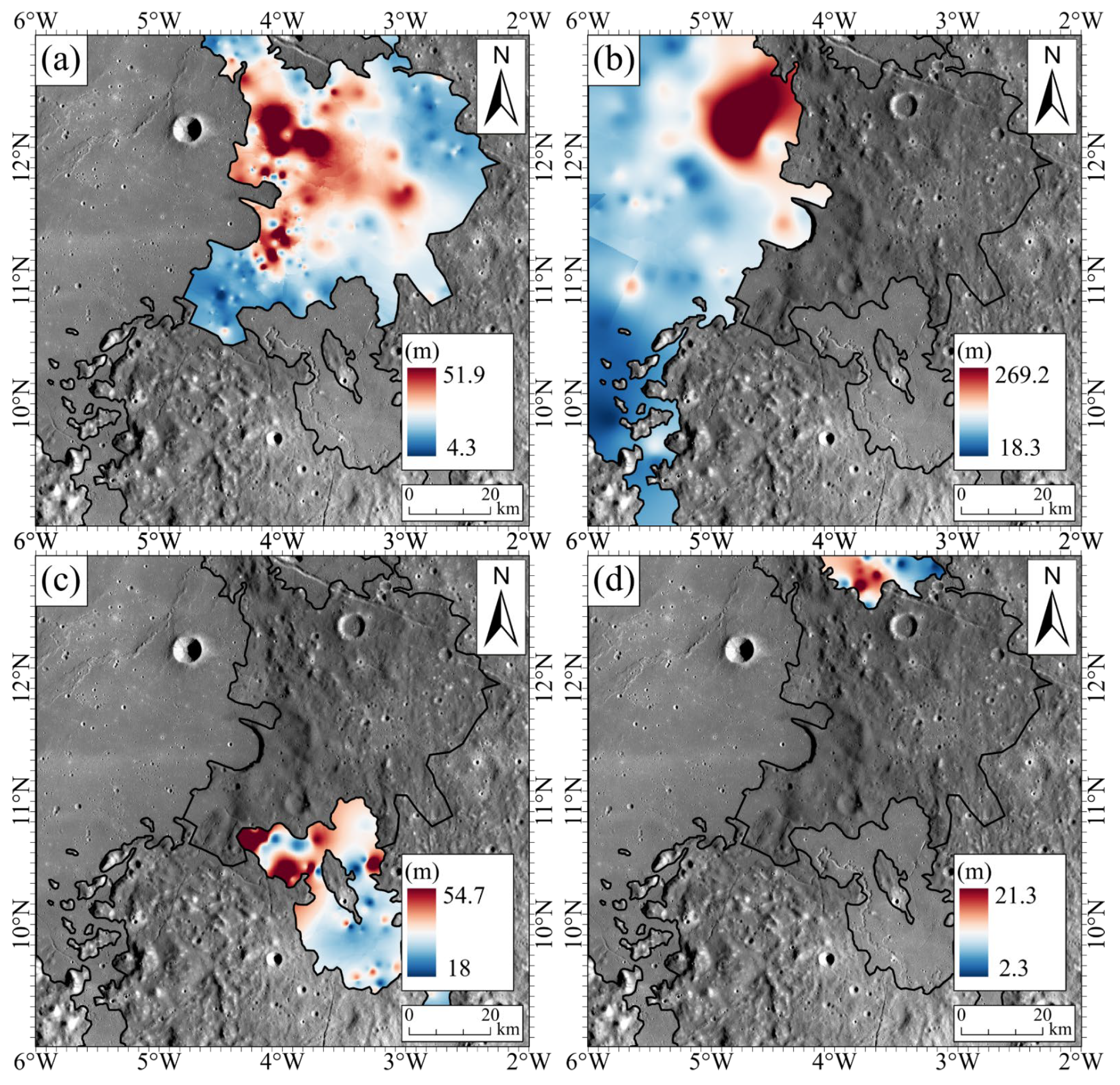 - This study systematically establishes, for the first time, a comprehensive geological evolution framework for the Rima Bode region, revealing its material composition, stratigraphic thickness characteristics, and potential volcanic source locations. The results provide crucial scientific evidence for a deeper understanding of the complex geological history in this region.