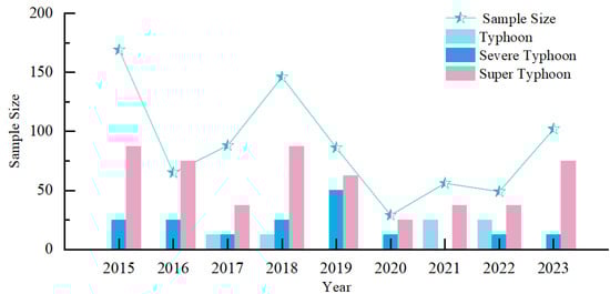 Distribution of typhoon intensity in the dataset.