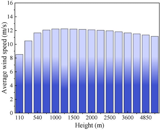Processed mean wind speed across different height levels.