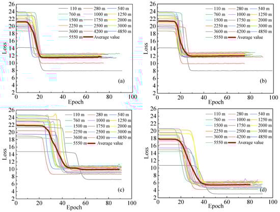 Validation loss curves of four scenarios across different height levels: (a) B1; (b) B2; (c) B3; (d) B4.