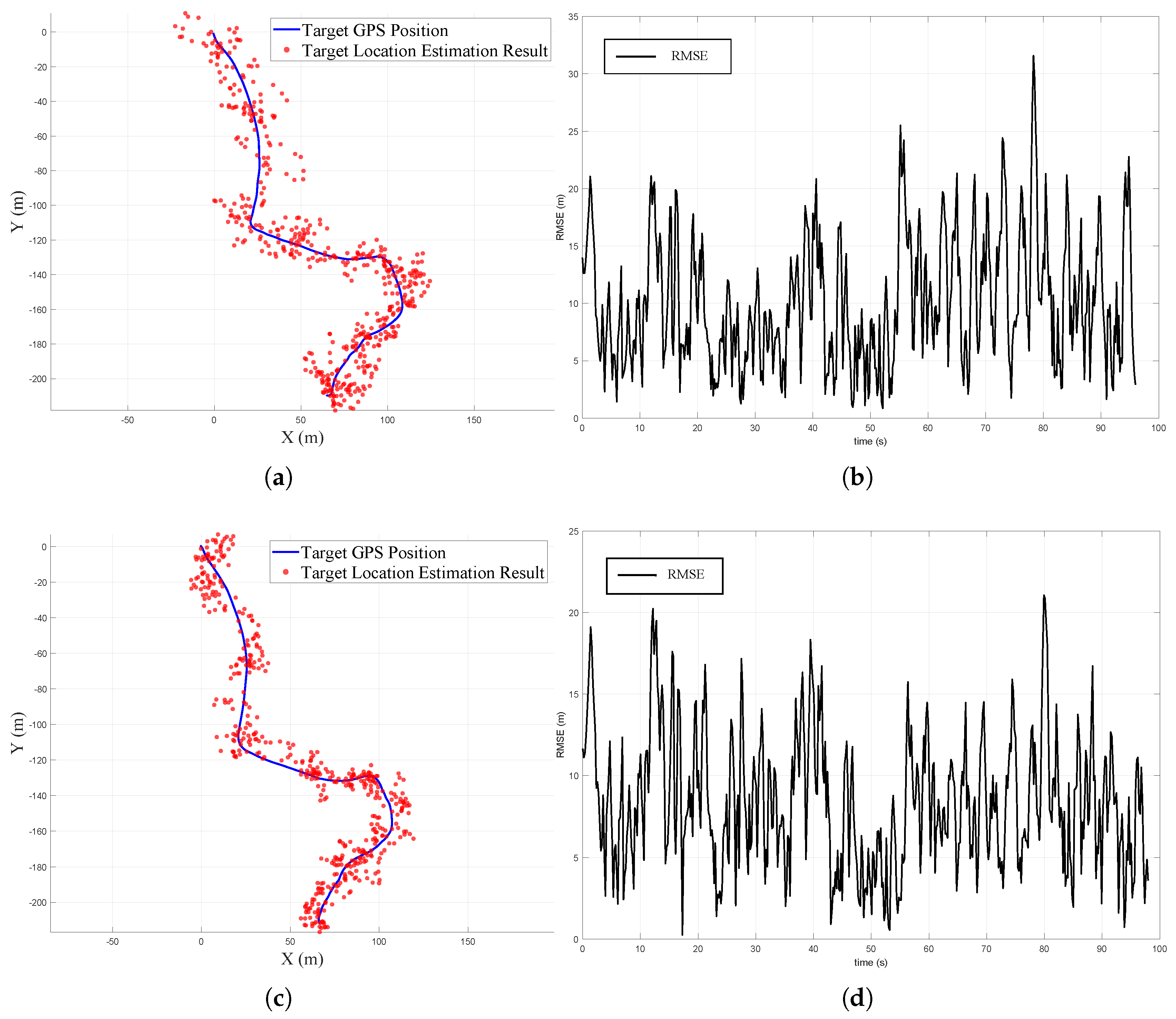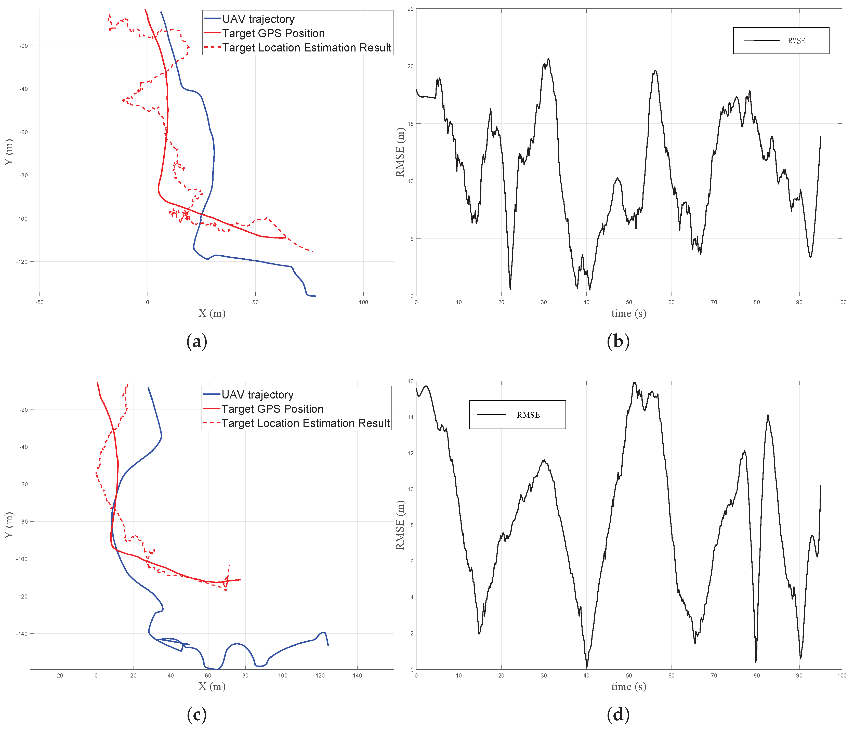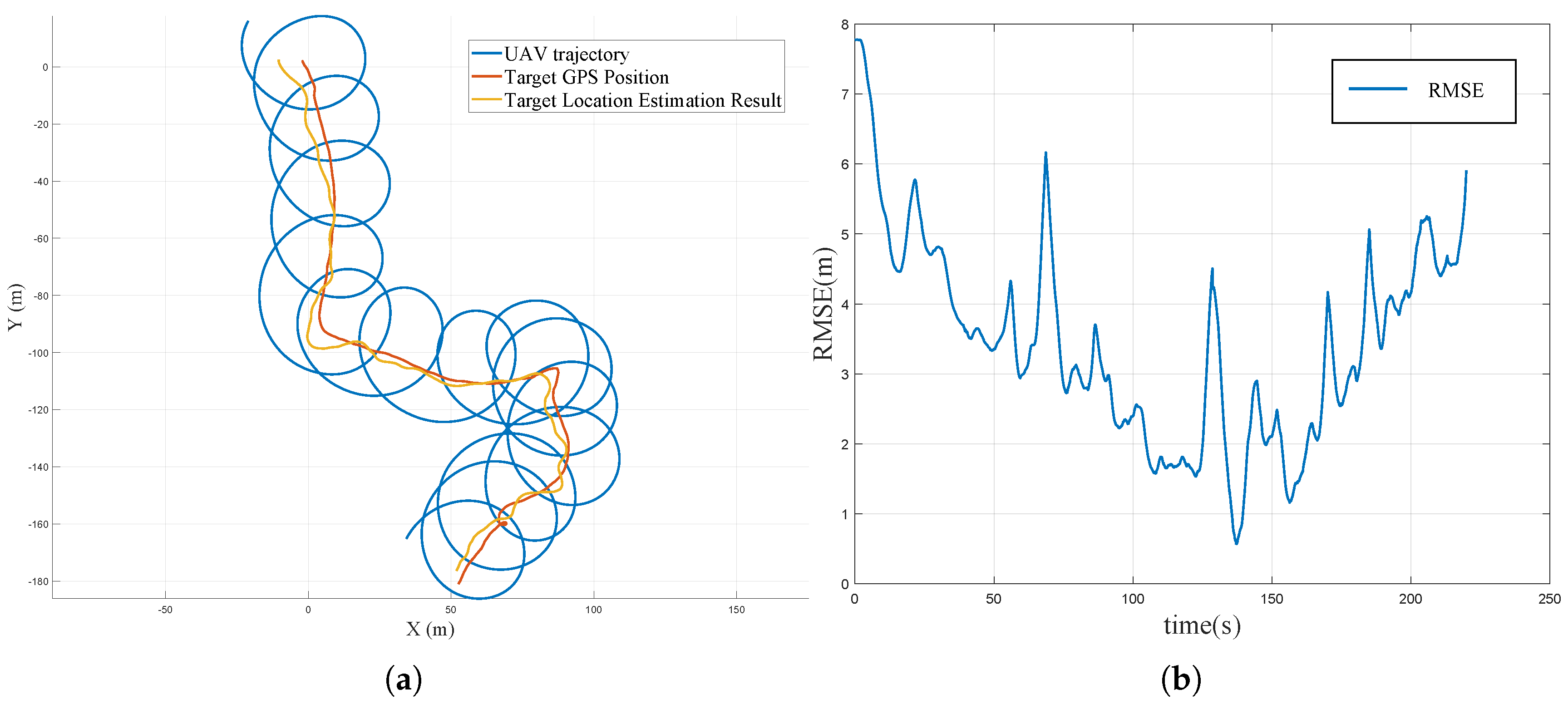 - Zhou, Y.; Tang, D.; Zhou, H.; Xiang, X. Moving Target Geolocation and Trajectory Prediction Using a Fixed-Wing UAV in Cluttered Environments. Remote Sens. 2025, 17, 969. [Google Scholar] [CrossRef]