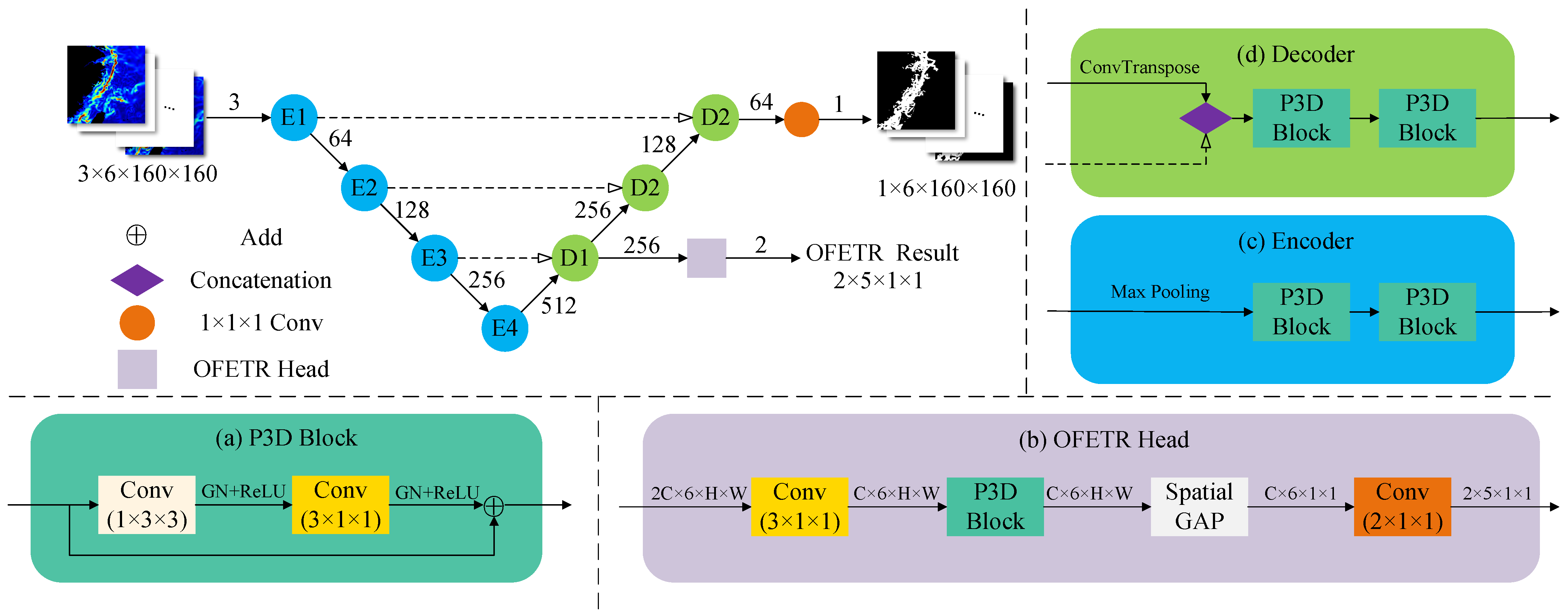 - We introduce a 3D U-Net-based multi-task learning framework that enables OFETR to explicitly share the spatiotemporal representations learned by OFD, avoiding the information loss caused by treating the two tasks in isolation. Under conditions where OFD varies only slightly, our framework improves OFETR while significantly reducing the parameter count and suppresses cascaded error propagation by design.