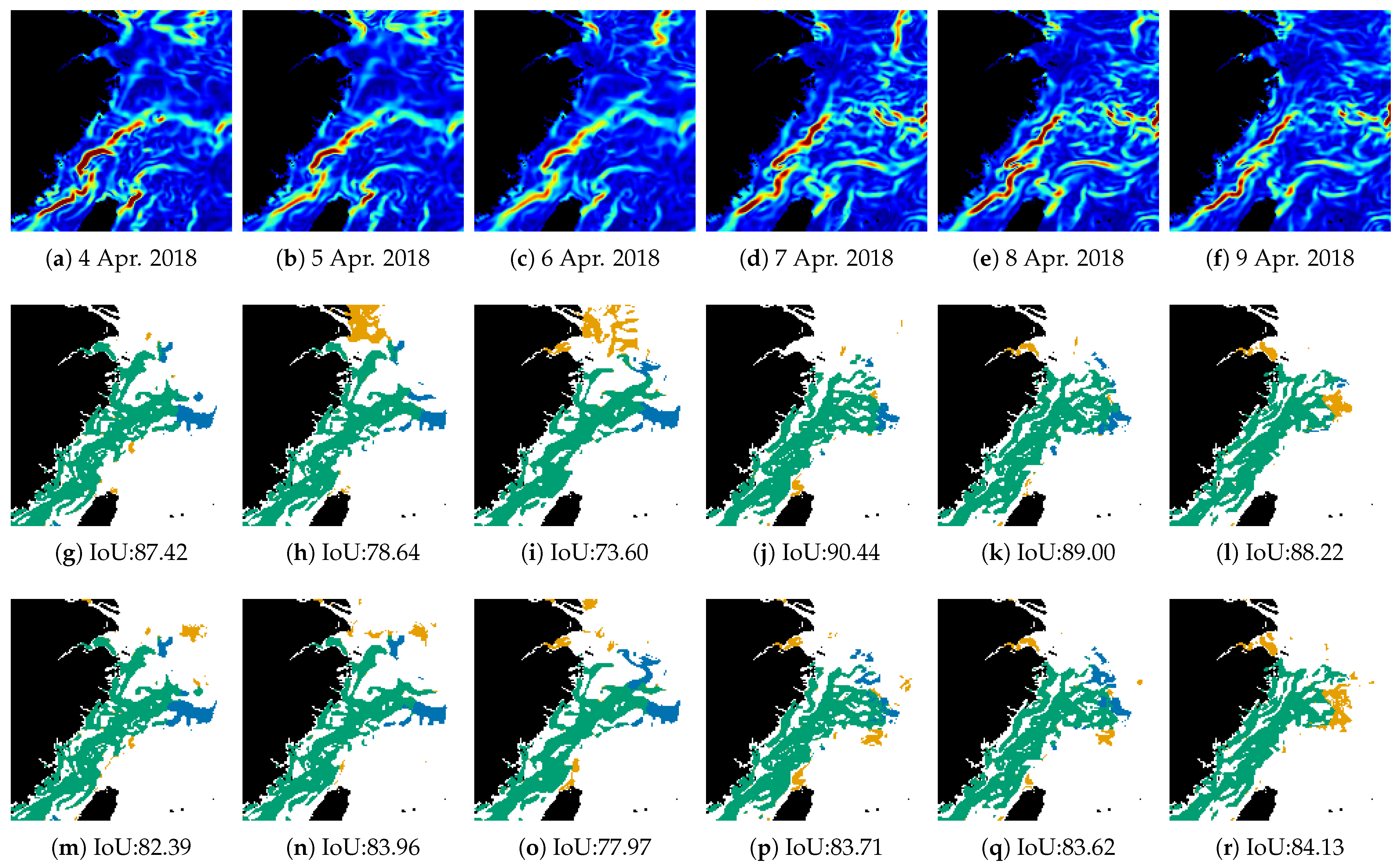 - Wang, Y.; Zhou, F.; Meng, Q.; Zhou, M.; Hu, Z.; Zhang, C.; Zhao, T. An ocean front detection and tracking algorithm. arXiv 2025, arXiv:2502.15250. [Google Scholar] [CrossRef]