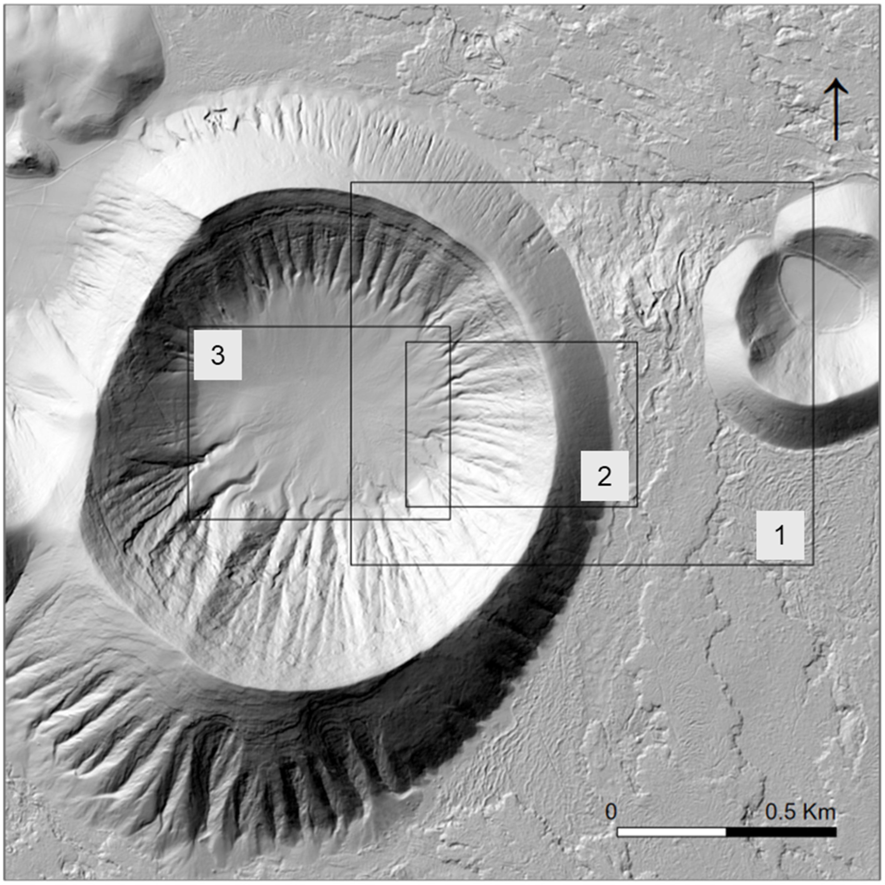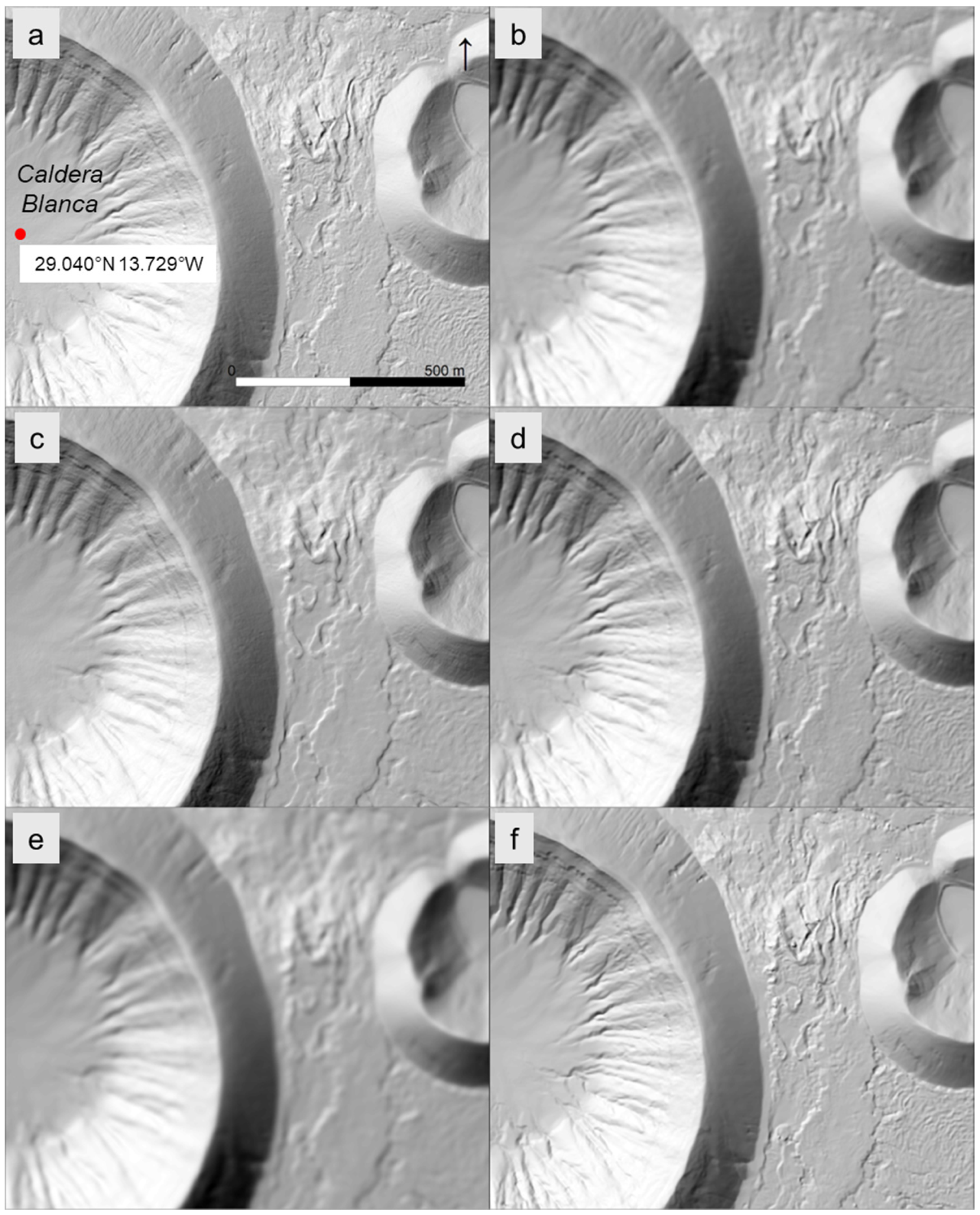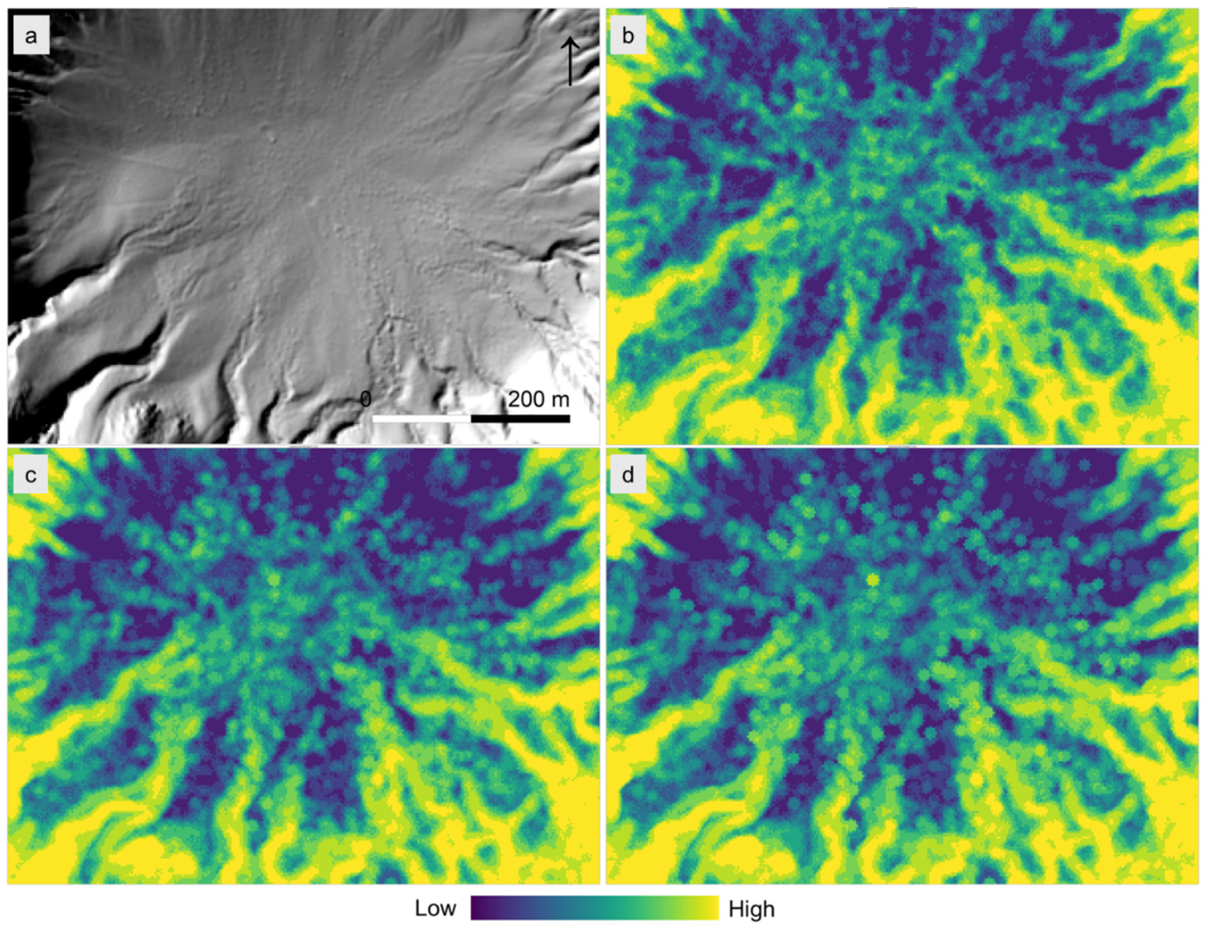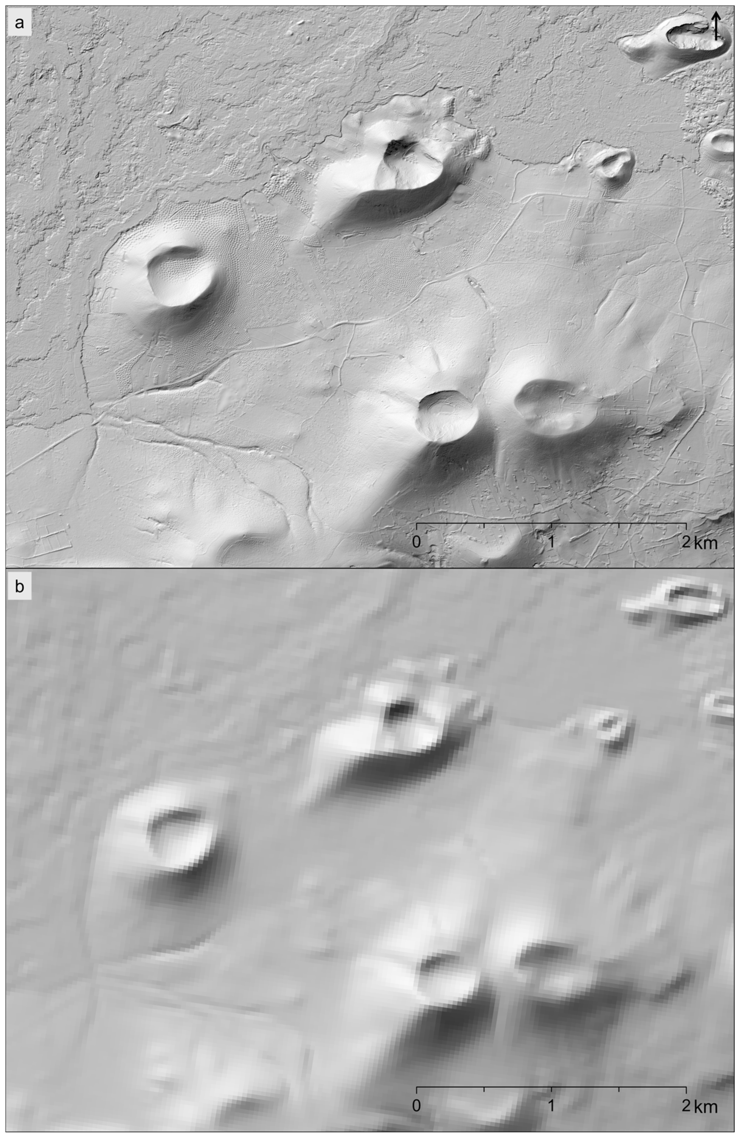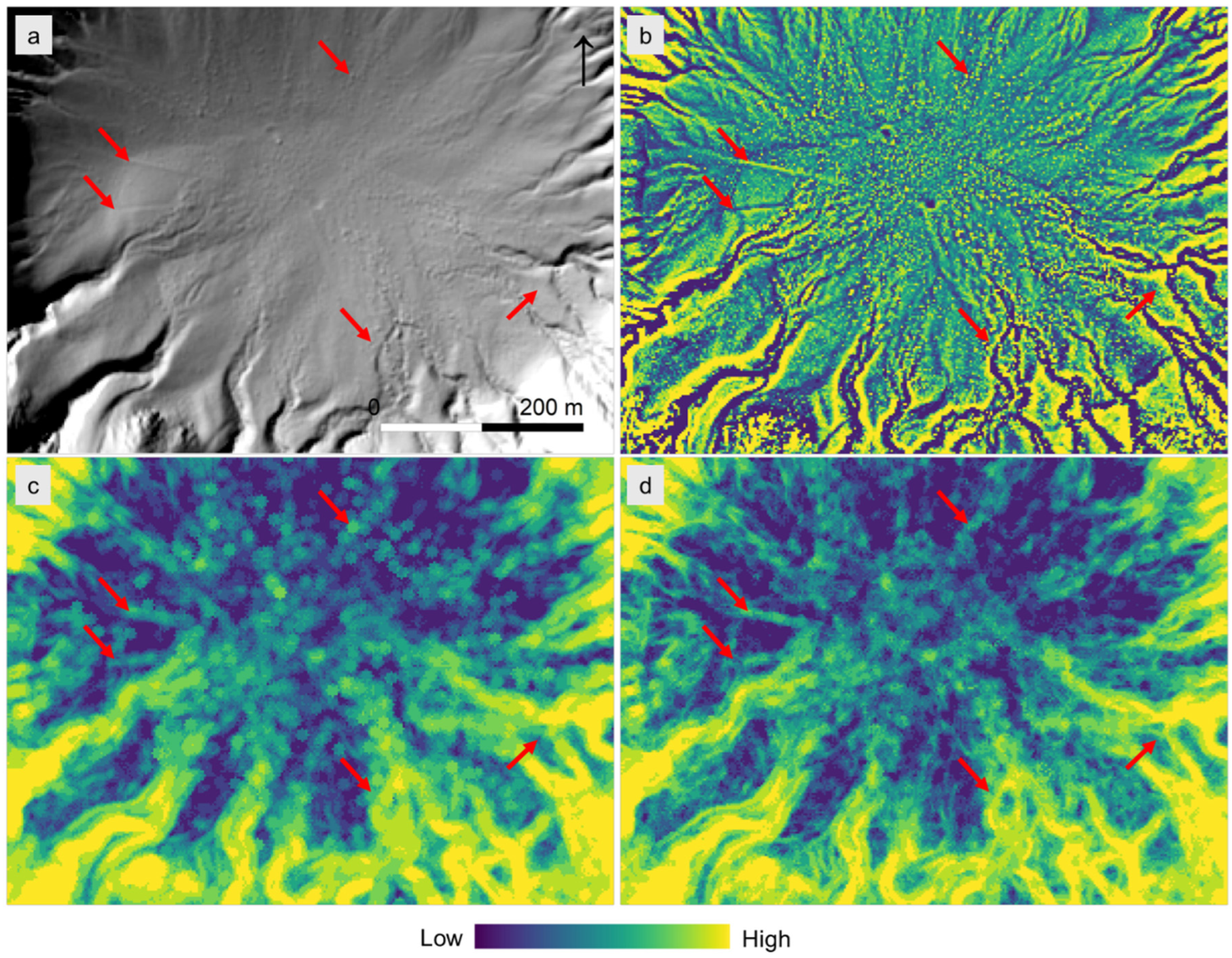 - Favalli, M.; Fornaciai, A. Visualization and Comparison of DEM-Derived Parameters. Application to Volcanic Areas. Geomorphology 2017, 290, 69–84. [Google Scholar] [CrossRef]