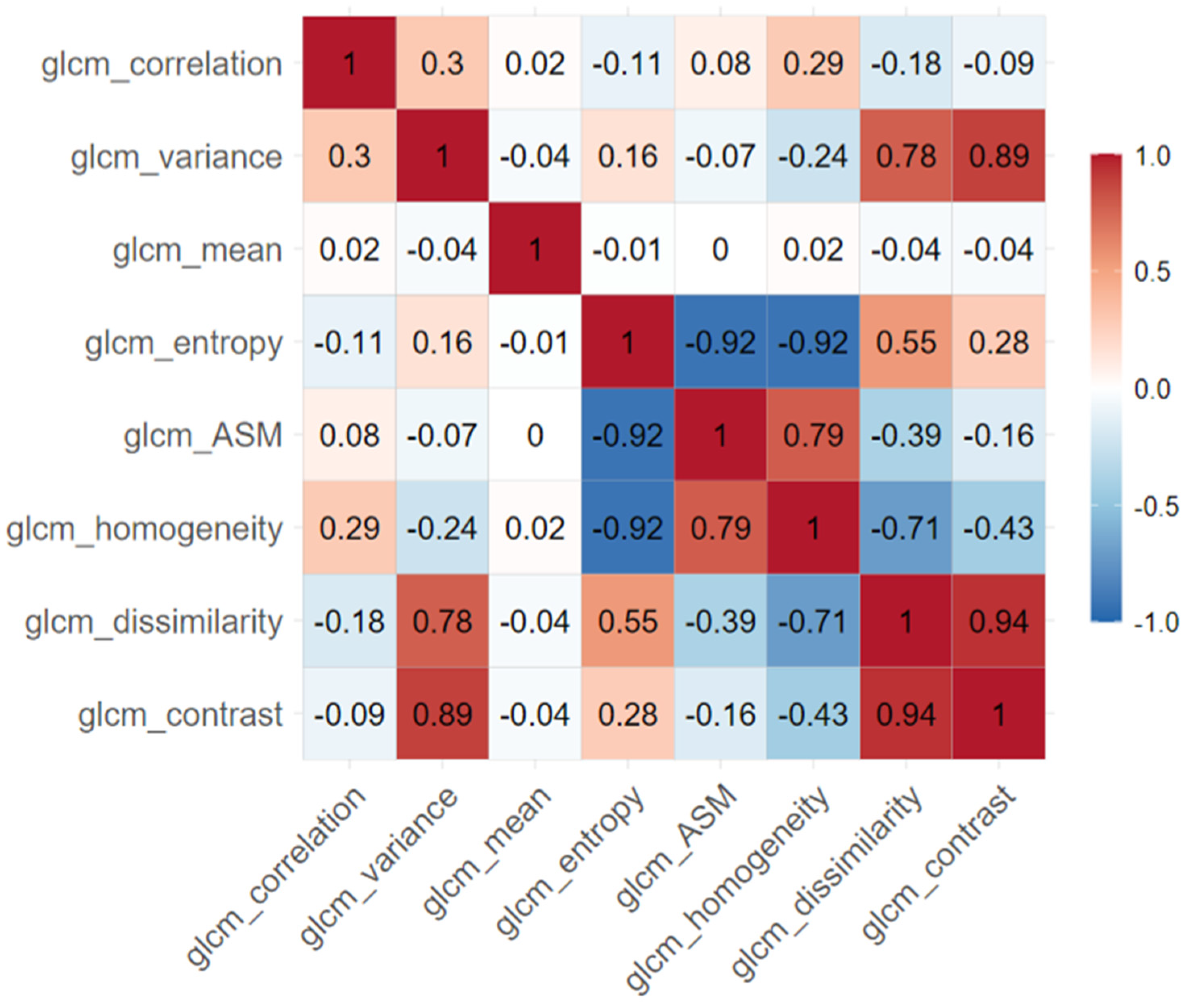 | ASM | Angular second-moment (GLCM), measure of homogeneity of the image |