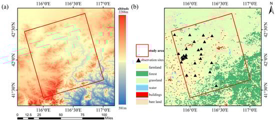 (a) Elevation of the study area, (b) site distribution of the study area.