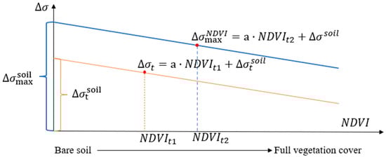 where is the maximum value of the change in radar backscattering coefficient fitted with NDVI, which decreases with increasing NDVI. is the function of NDVI, and represents the fitting coefficient [23].