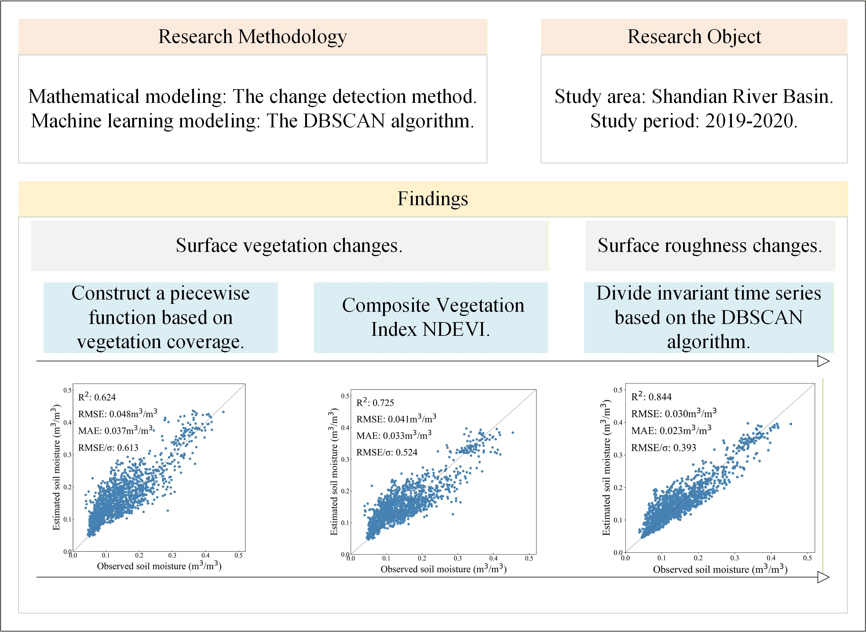 3. These findings demonstrate that anomalous events in extended time series significantly compromise retrieval accuracy, whereas DBSCAN-driven temporal consistency preservation substantially enhances the reliability of soil moisture estimates within the study area.