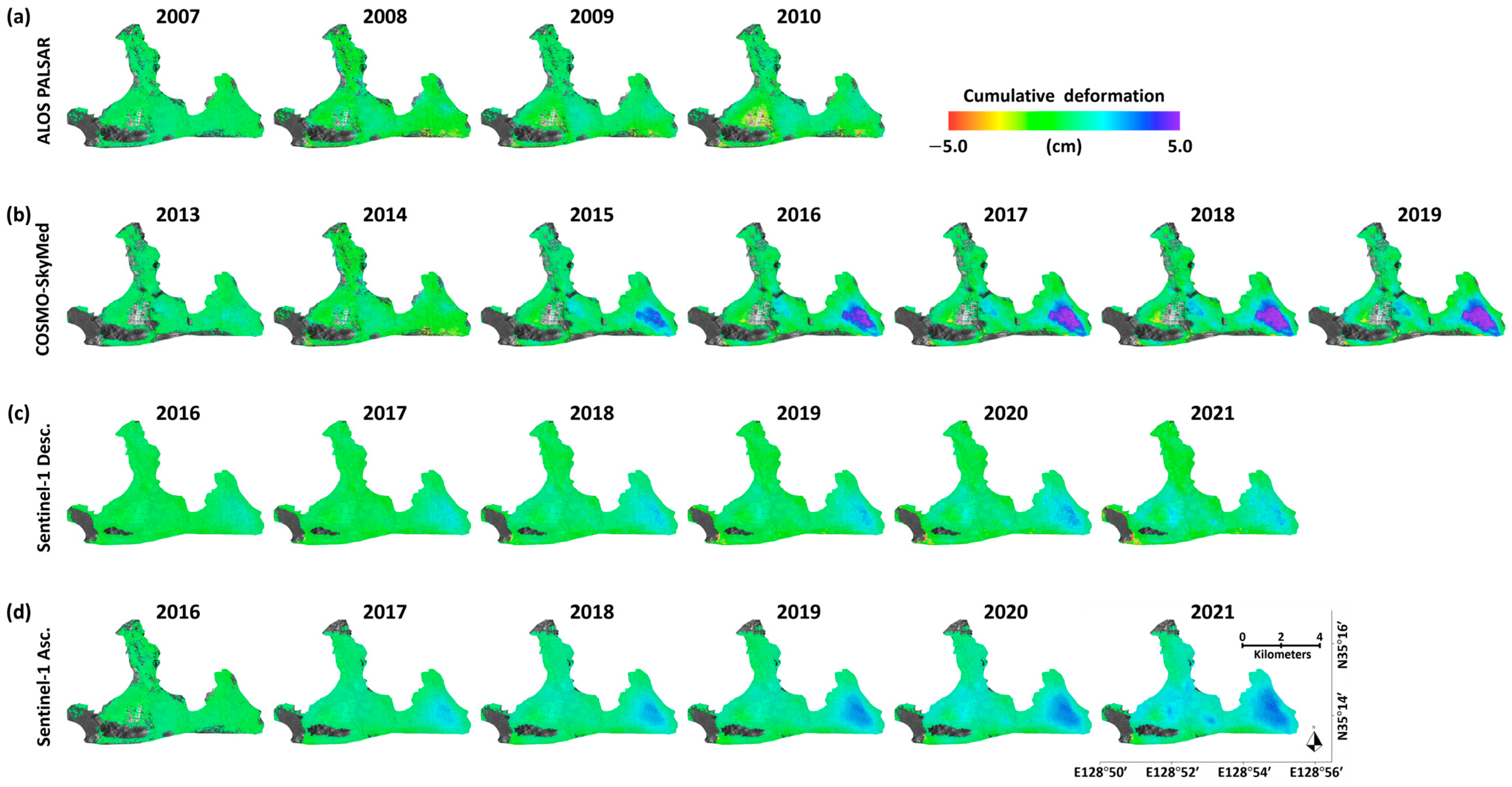 4.1. MT-InSAR Observations