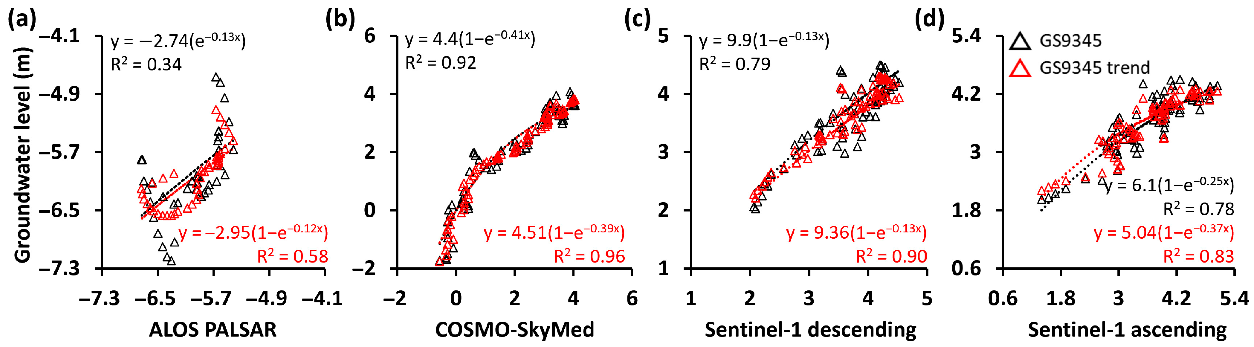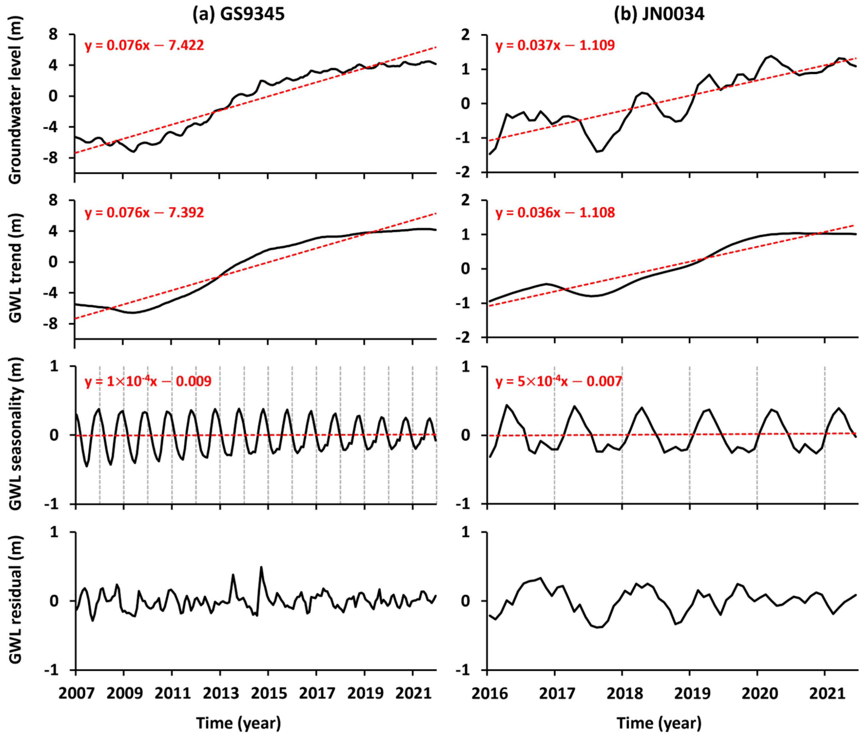 - Wu, S.; Liu, G.; Wang, X.; Jia, H.; Ding, Y.; Zhang, B.; Mao, W. Assessing Groundwater Level Change and Aquifer Parameters Across Los Angeles and Orange County Using InSAR Measurements and Machine Learning. IEEE J. Sel. Top. Appl. Earth Obs. Remote Sens. 2025, 18, 12559–12571. [Google Scholar] [CrossRef]