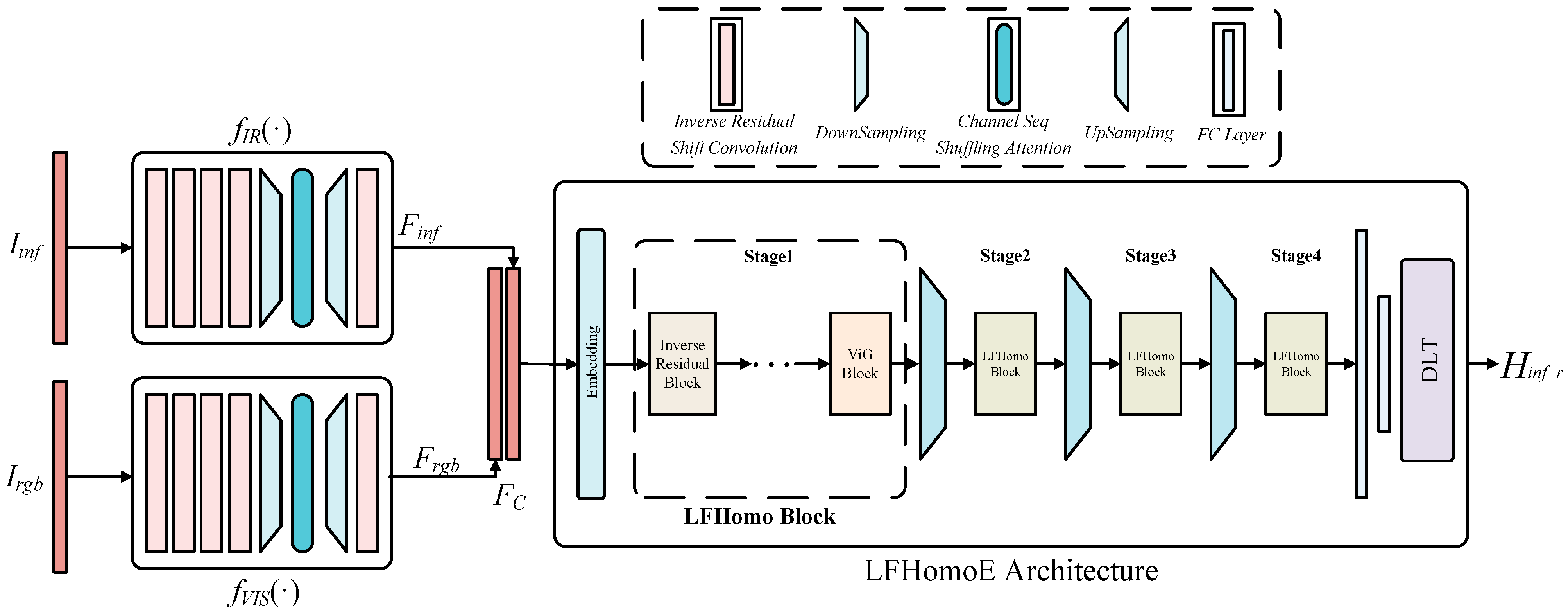 - We propose a lightweight homography estimation method, LFHomo, for homography estimation of infrared and visible images in low-altitude scenarios.