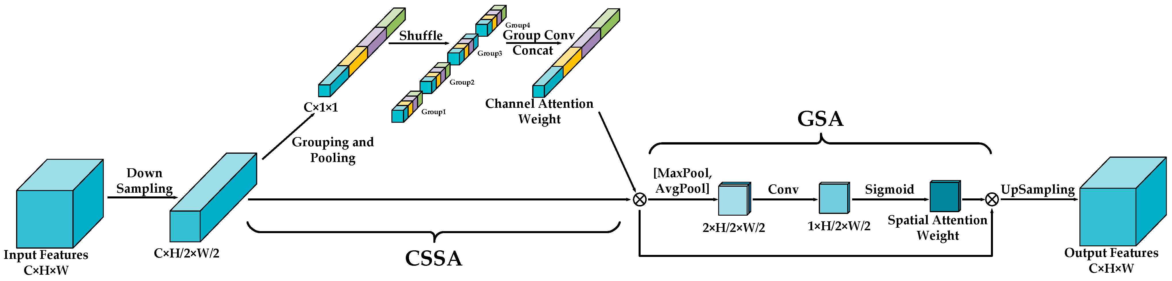 3.2.2. Spatial Reduction-Based Channel Sequence Shuffle Attention