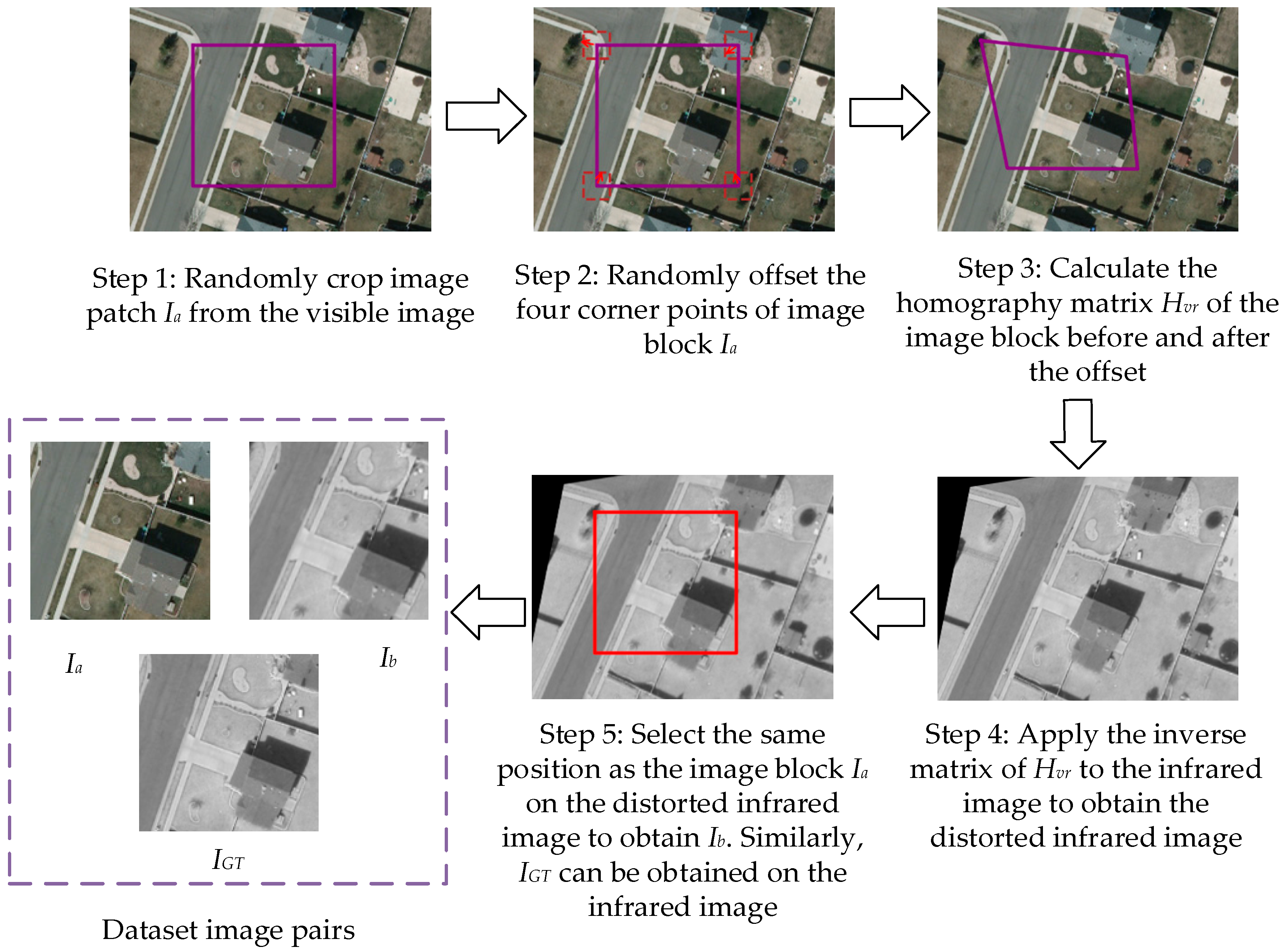 - We constructed a novel unregistered UAV-based infrared and visible image dataset, which provides support for research on multimodal UAV remote sensing image registration and fusion.