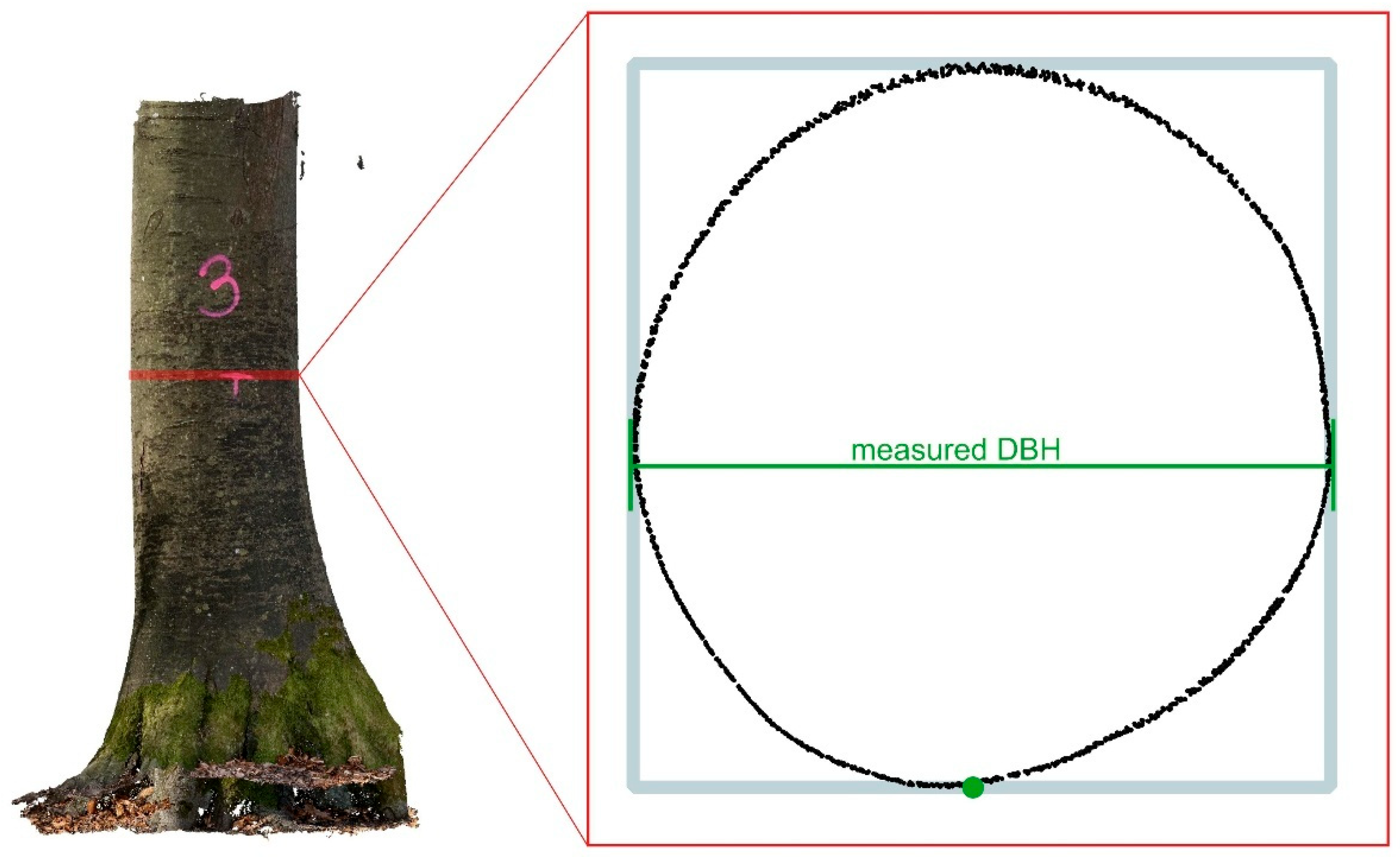 8]. Given its role in forest management, DBH is also a fundamental factor in determining tree age, health, and suitability for harvest.