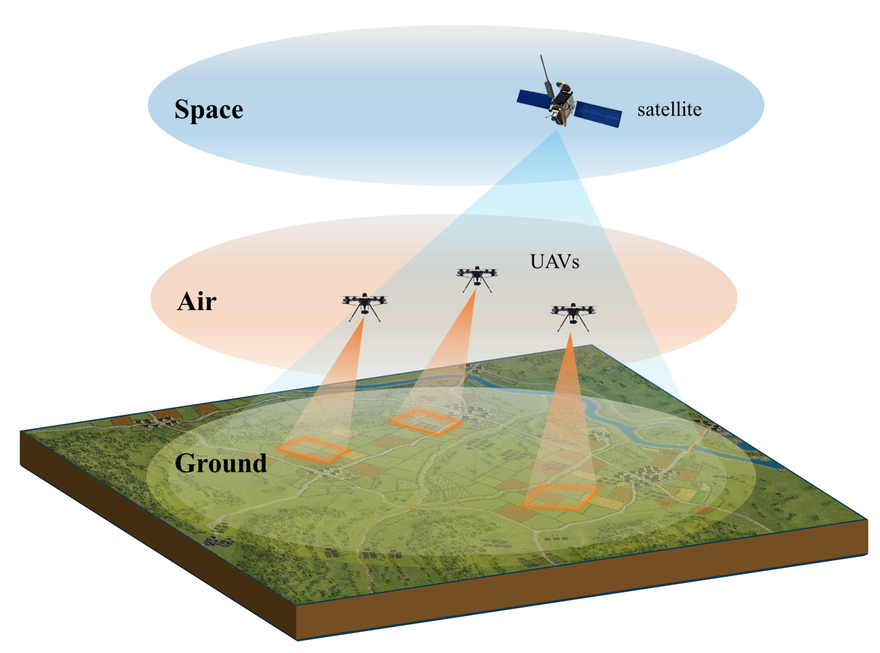 - Zhao, H.; Ji, F.; Wang, Y.; Yao, K.; Chen, F. Space–Air–Ground–Sea Integrated Network with Federated Learning. Remote Sens. 2024, 16, 1640. [Google Scholar] [CrossRef]