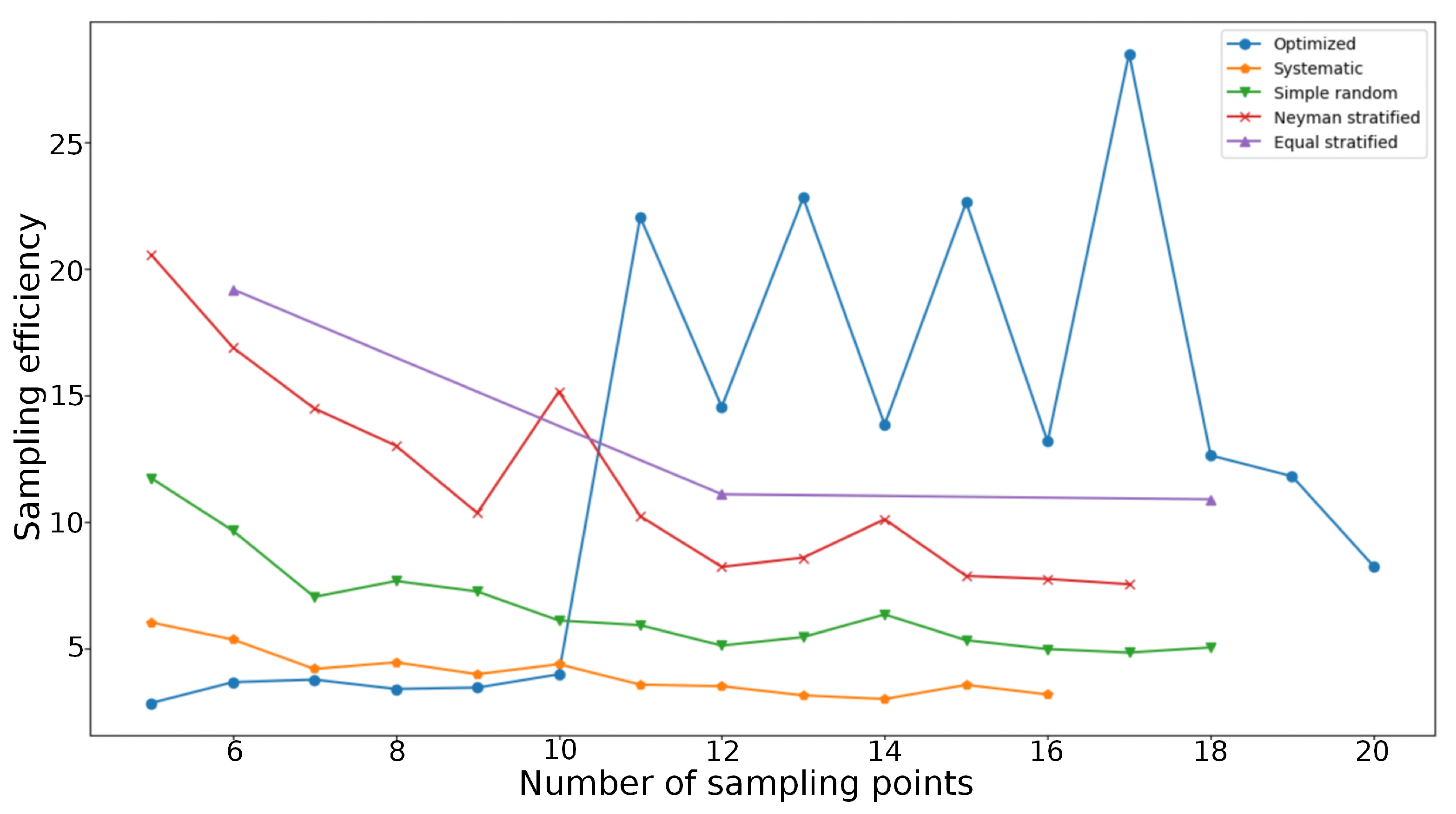 - The SSO model can improve the efficiency of observations by optimizing the sampling design. Under the same cost constraint, the SSO model increased the number of sampling points by at least 11.1% and the sampling efficiency was at least 38.7% higher than the conventional sampling plans.