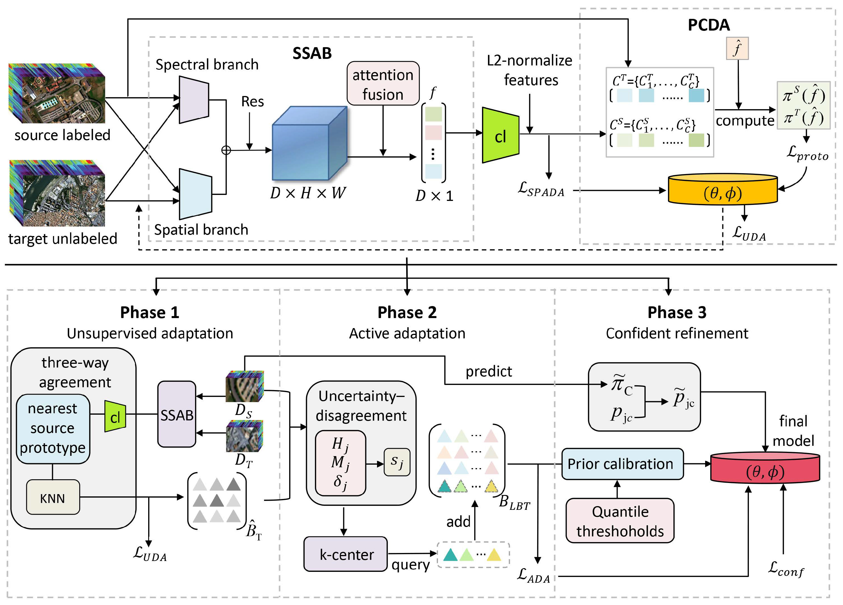 - An attention-guided spectral–spatial backbone that calibrates spectral and spatial responses before adaptation, stabilizing feature geometry across scenes.