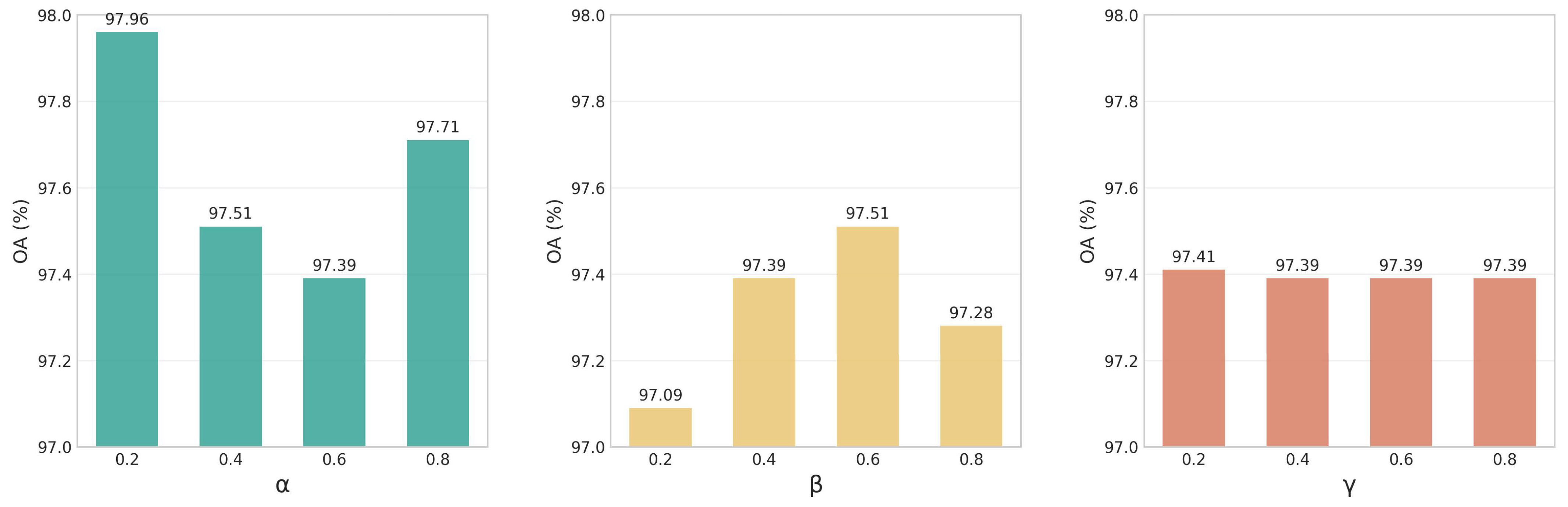 | OA | 92.64 ± 1.12 | 92.44 ± 0.98 | 92.42 ± 0.82 | 89.96 ± 0.93 | 97.89 ± 0.68 |