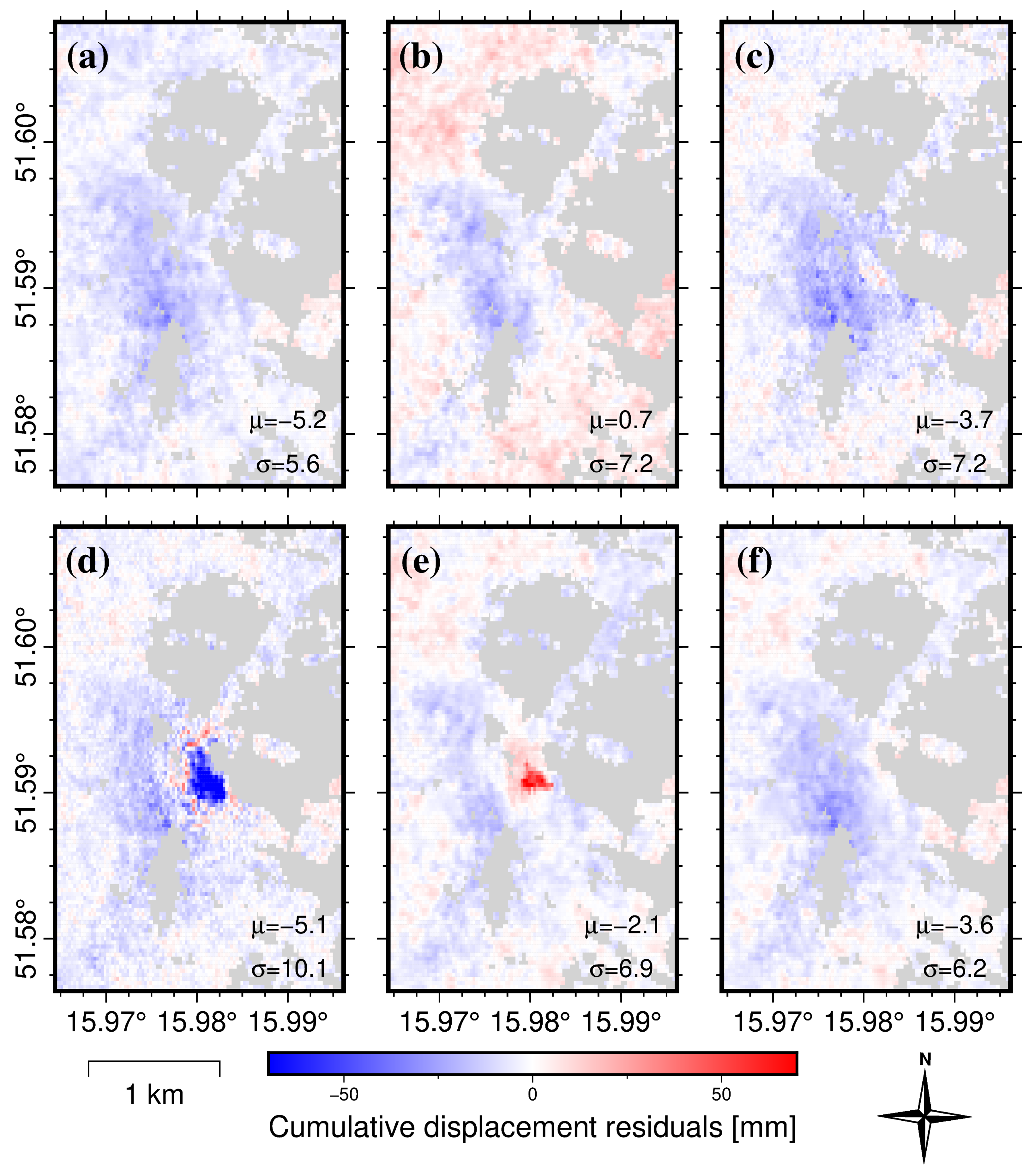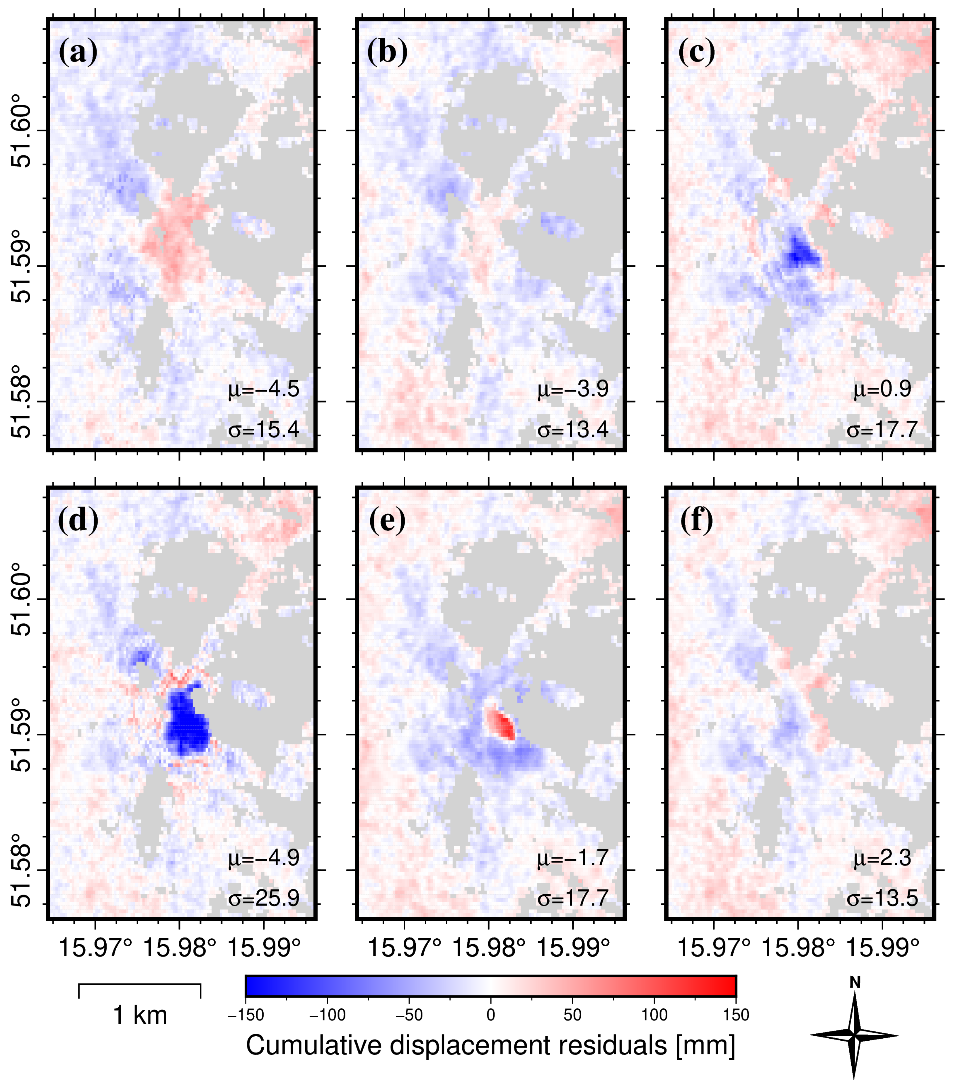 - Samsonov, S.; d’Oreye, N.; Smets, B. Ground Deformation Associated with Post-Mining Activity at the French–German Border Revealed by Novel InSAR Time Series Method. Int. J. Appl. Earth Obs. Geoinf. 2013, 23, 142–154. [Google Scholar] [CrossRef]