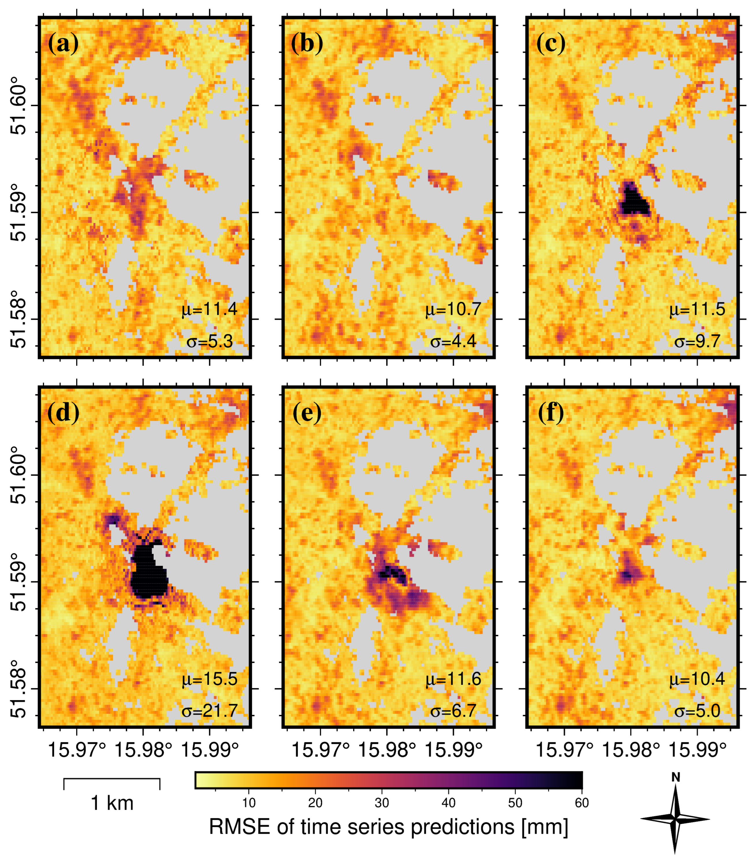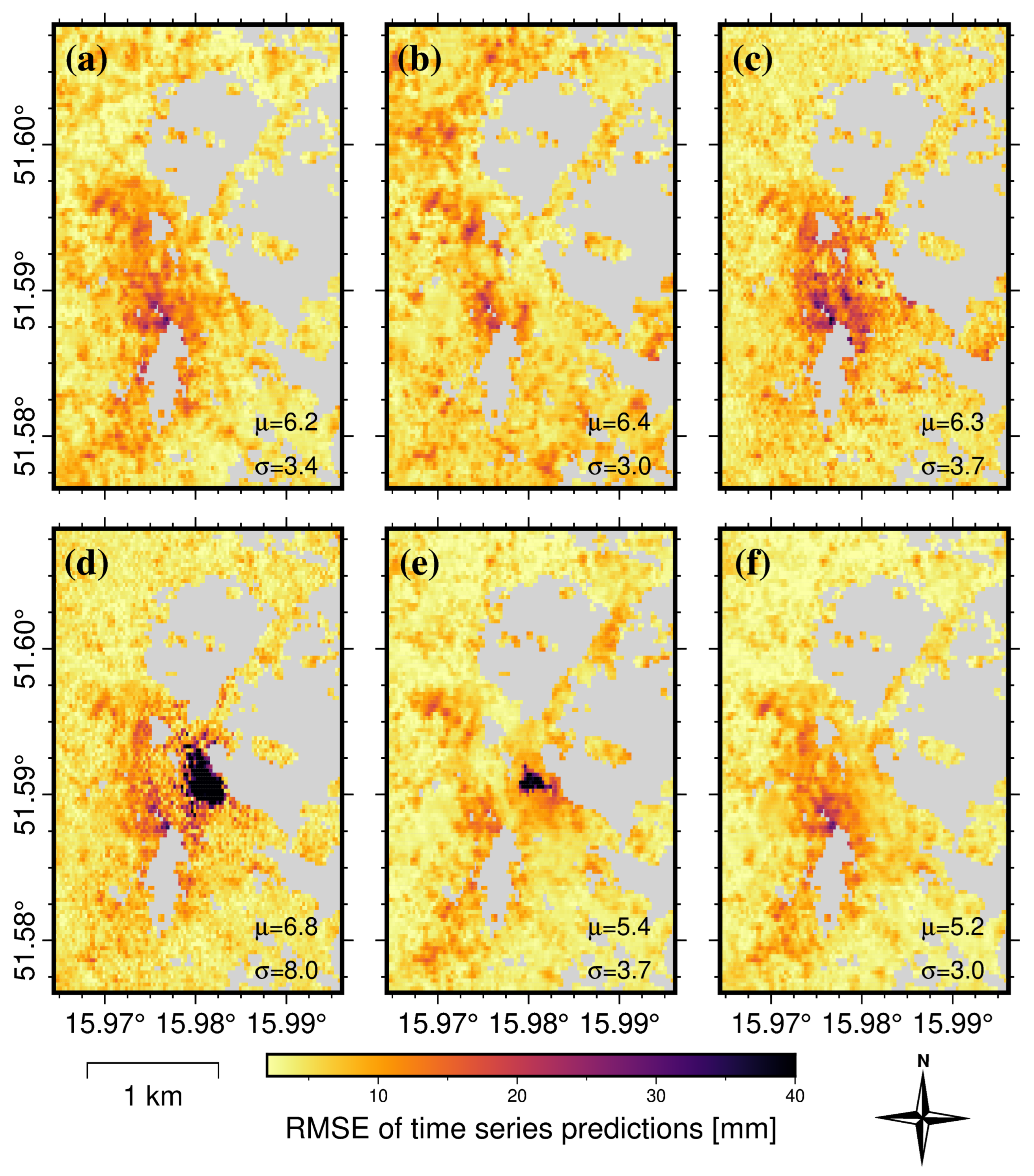 - Hill, P.; Biggs, J.; Ponce-López, V.; Bull, D. Time-Series Prediction Approaches to Forecasting Deformation in Sentinel-1 InSAR Data. J. Geophys. Res. Solid Earth 2021, 126, e2020JB020176. [Google Scholar] [CrossRef]
