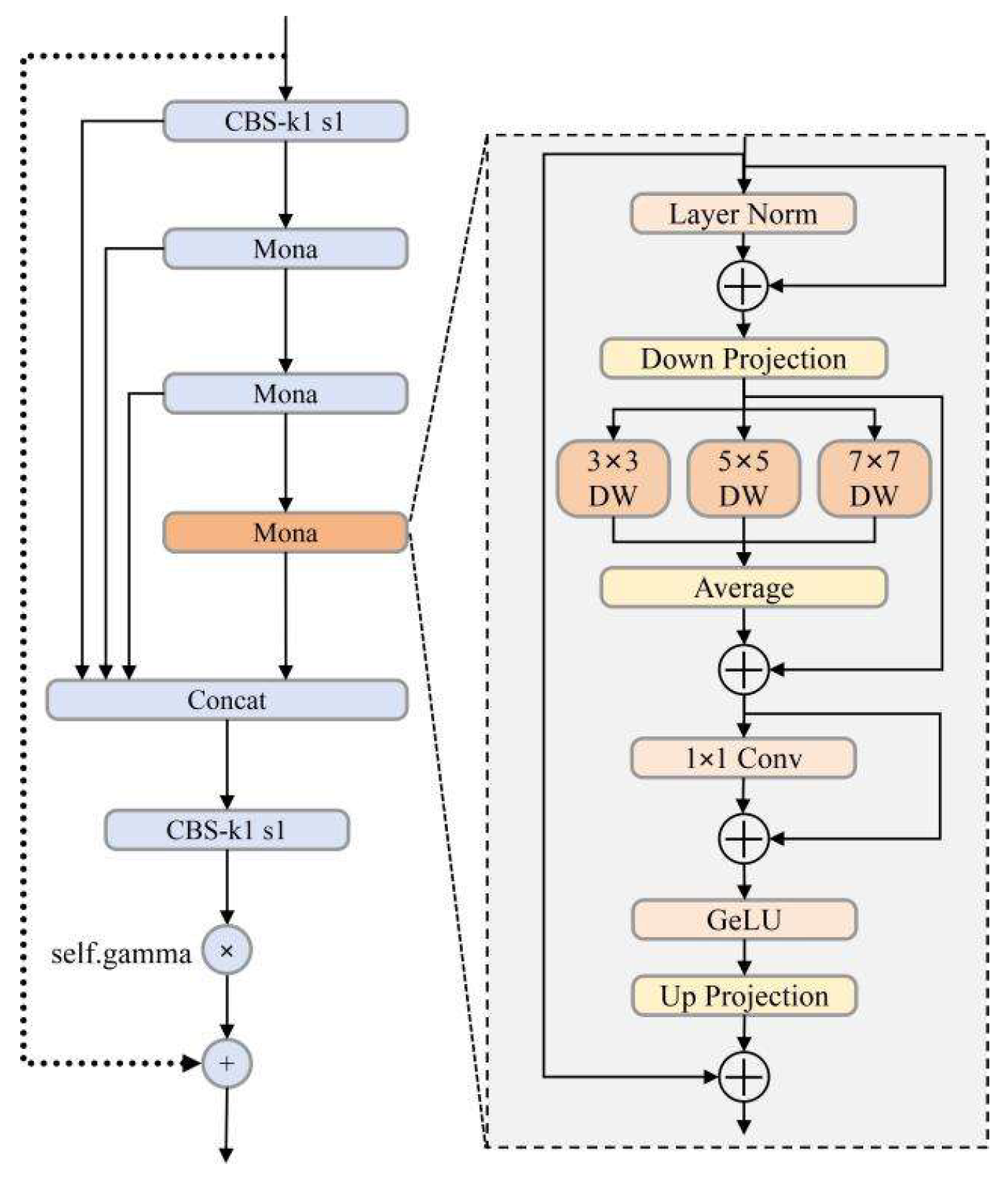 The AMC2f module strengthens multi-scale feature representation by capturing both fine textures and larger structural cues. This enables the detector to maintain confident predictions even in low-contrast scenes or under partial occlusion, explaining the consistent improvements observed across the ablation results. Its adaptive multi-branch structure ensures that both coarse and fine features are preserved, providing stable representations for downstream localization and classification.