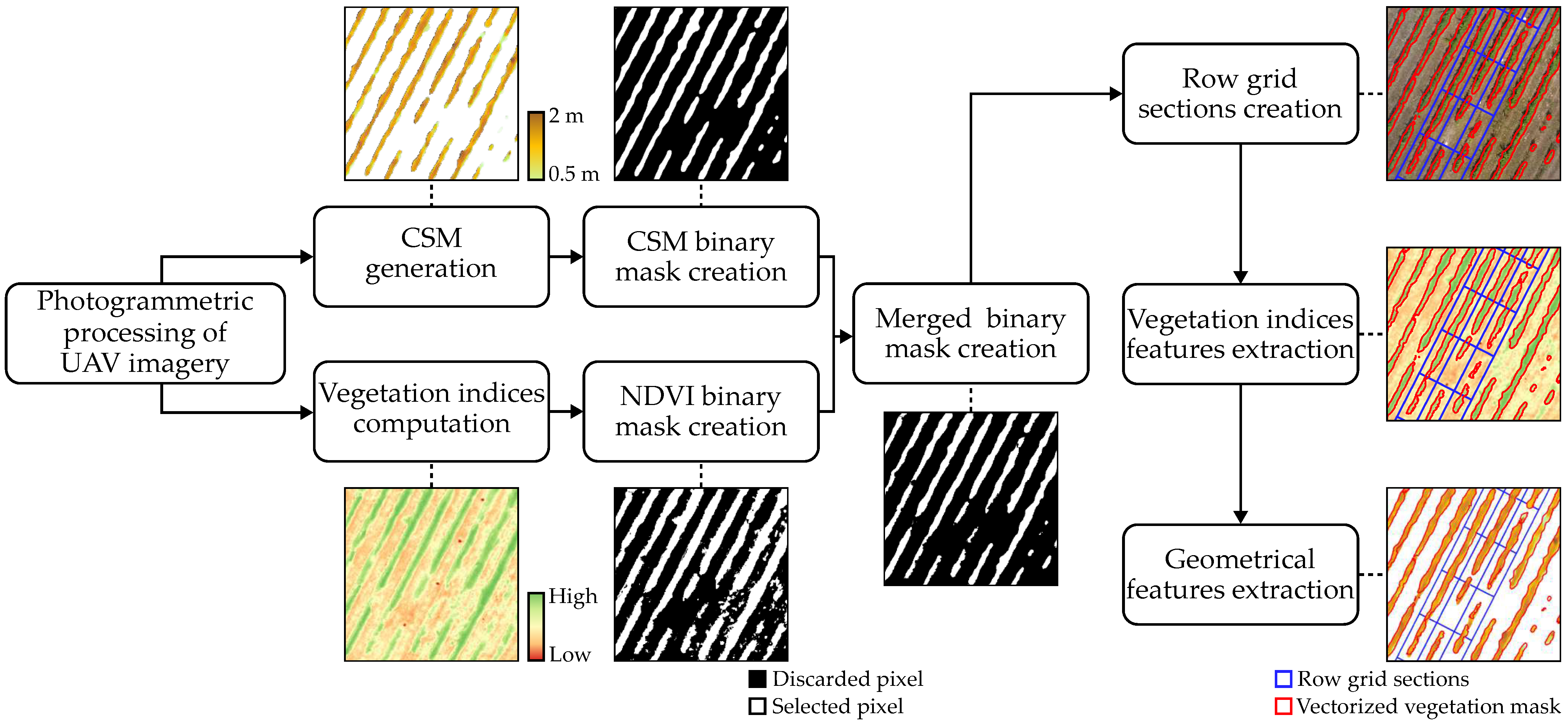 - De Castro, A.I.; Jiménez-Brenes, F.M.; Torres-Sánchez, J.; Peña, J.M.; Borra-Serrano, I.; López-Granados, F. 3-D characterization of vineyards using a novel UAV imagery-based OBIA procedure for precision viticulture applications. Remote Sens. 2018, 10, 584. [Google Scholar] [CrossRef]