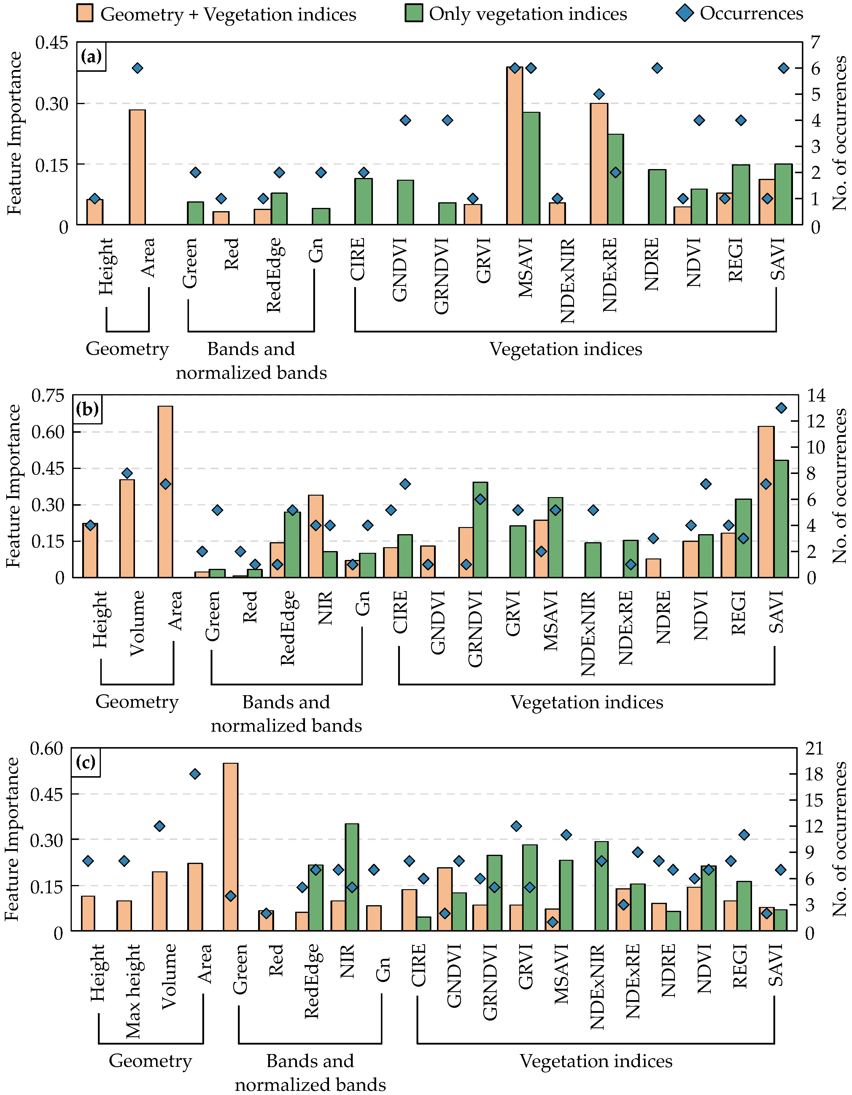 - Geometric features, such as canopy area and volume, improved model accuracy and reduced the number of predictors, while the integration of spectral and geometric data improved prediction robustness across different phenological stages.