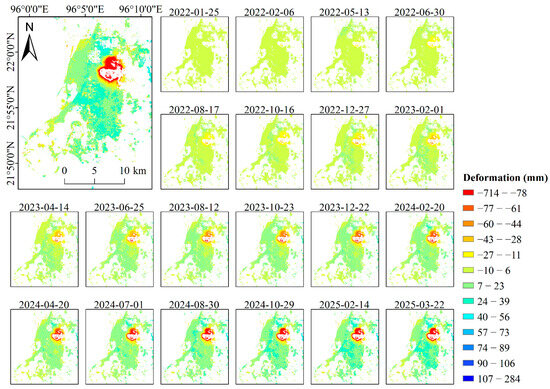 3.1. InSAR Land-Subsidence Deformation Results