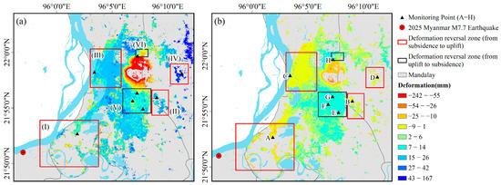 - Hussain, S.; Pan, B.; Hussain, W.; Ali, M.; Sajjad, M.M.; Afzal, Z.; Tariq, A. Analyzing coseismic displacement of the M7.7 Myanmar earthquake on march 28, 2025, using Sentinel-1 InSAR data. Structures 2025, 80, 109718. [Google Scholar] [CrossRef]