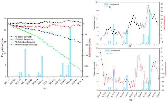 Some studies have conducted periodic analysis by decomposing time-series signals to extract sub-patterns and trend components that drive deformation. This helps in identifying the underlying causes. For instance, ref. [29] used independent component analysis (ICA) to decompose time-series data and identified four main components. They also analyzed the spatial relationship between these components and observed deformation patterns.