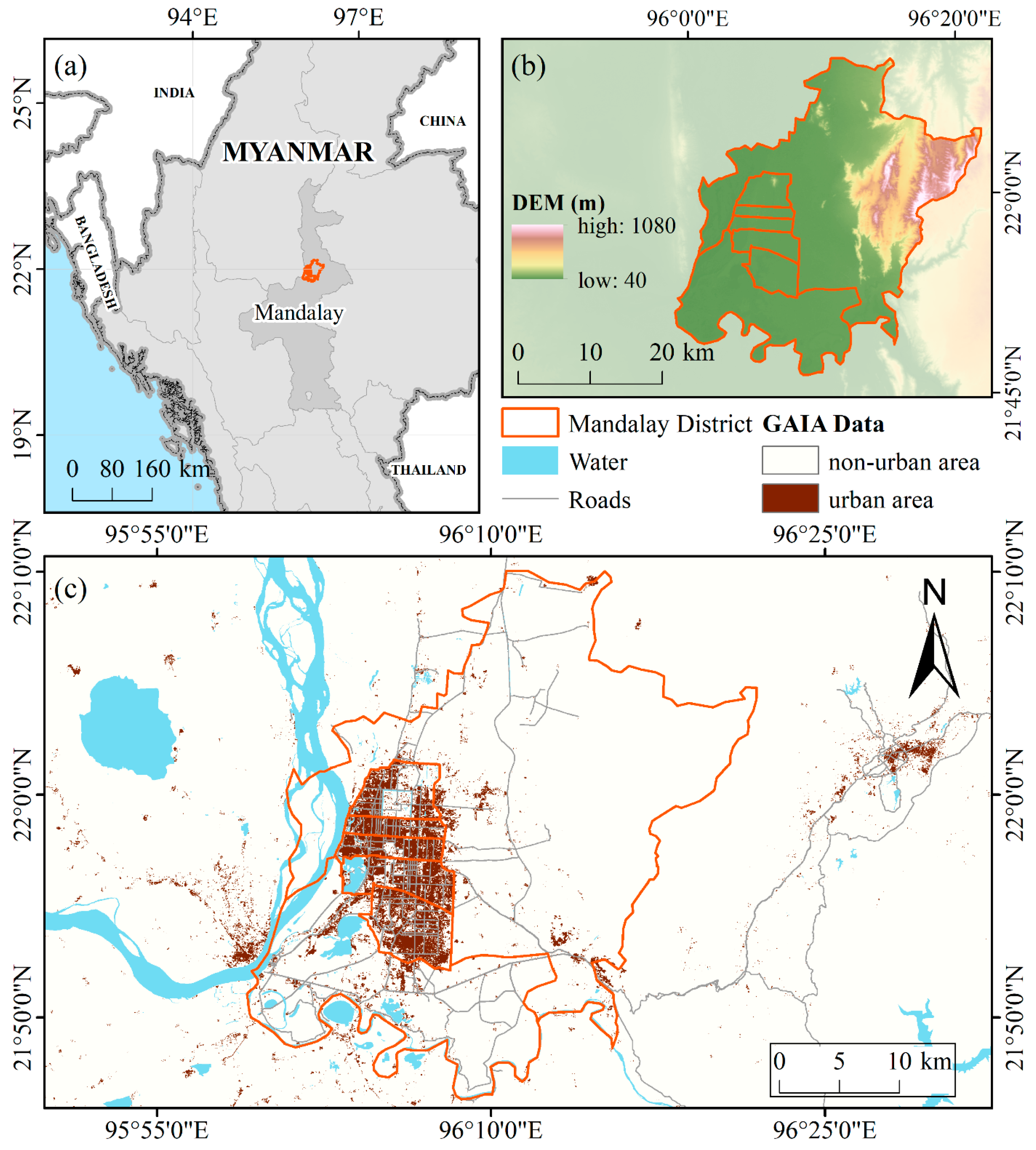 - Kim, Y. Mandalay, Myanmar: The remaking of a South-east Asian hub in a country at the crossroads. Cities 2018, 72, 274–286. [Google Scholar] [CrossRef]