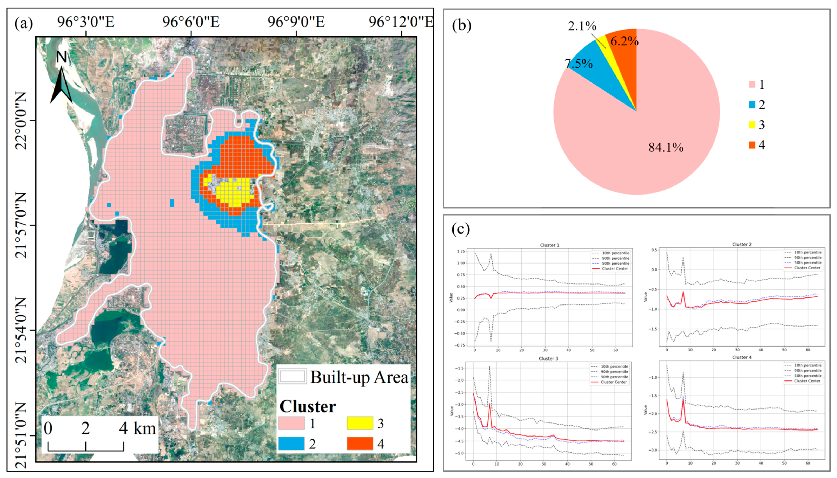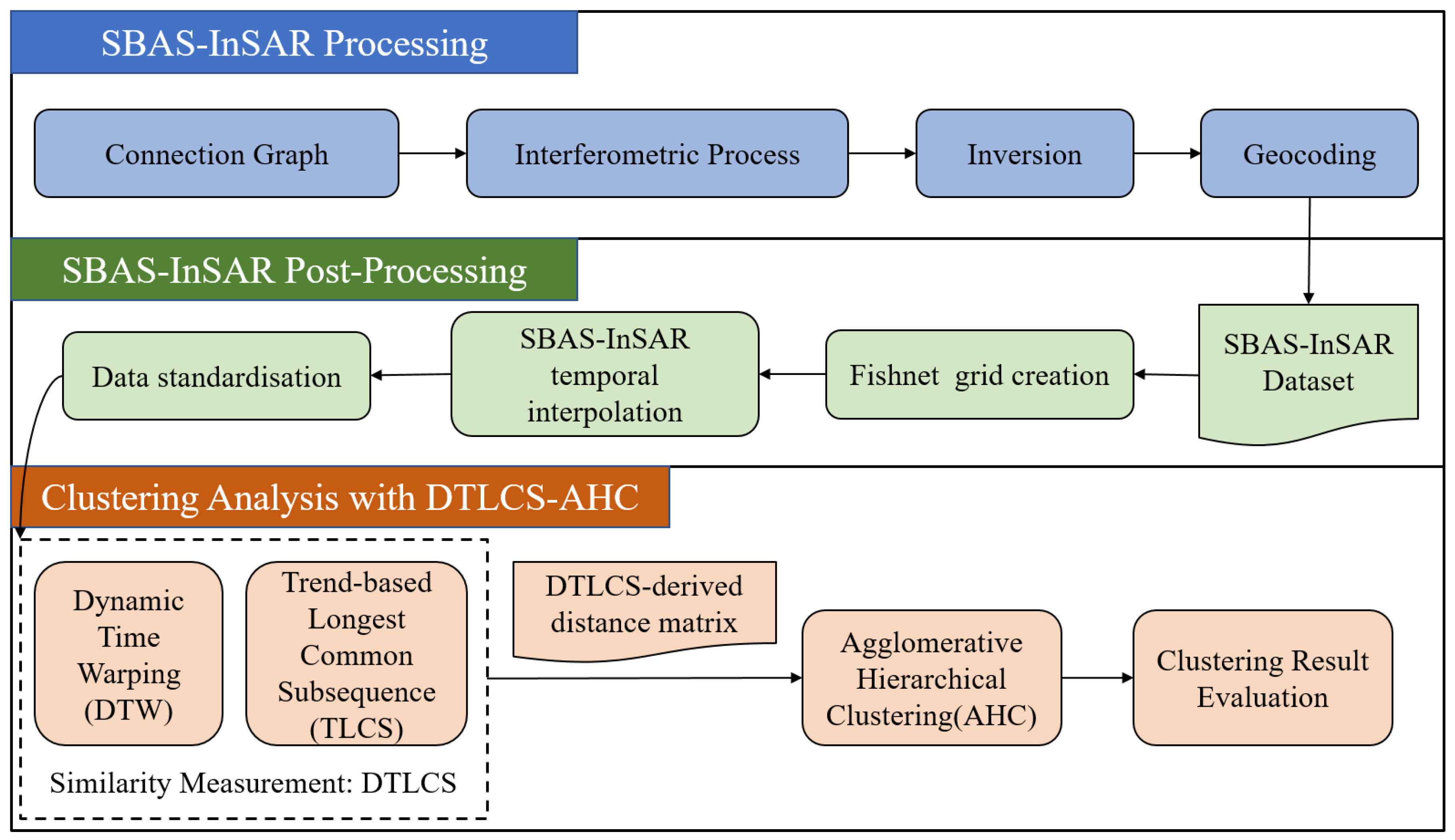- Yang, M.; Li, M.; Huang, C.; Zhang, R.; Liu, R. Exploring the InSAR Deformation Series Using Unsupervised Learning in a Built Environment. Remote Sens. 2024, 16, 1375. [Google Scholar] [CrossRef]