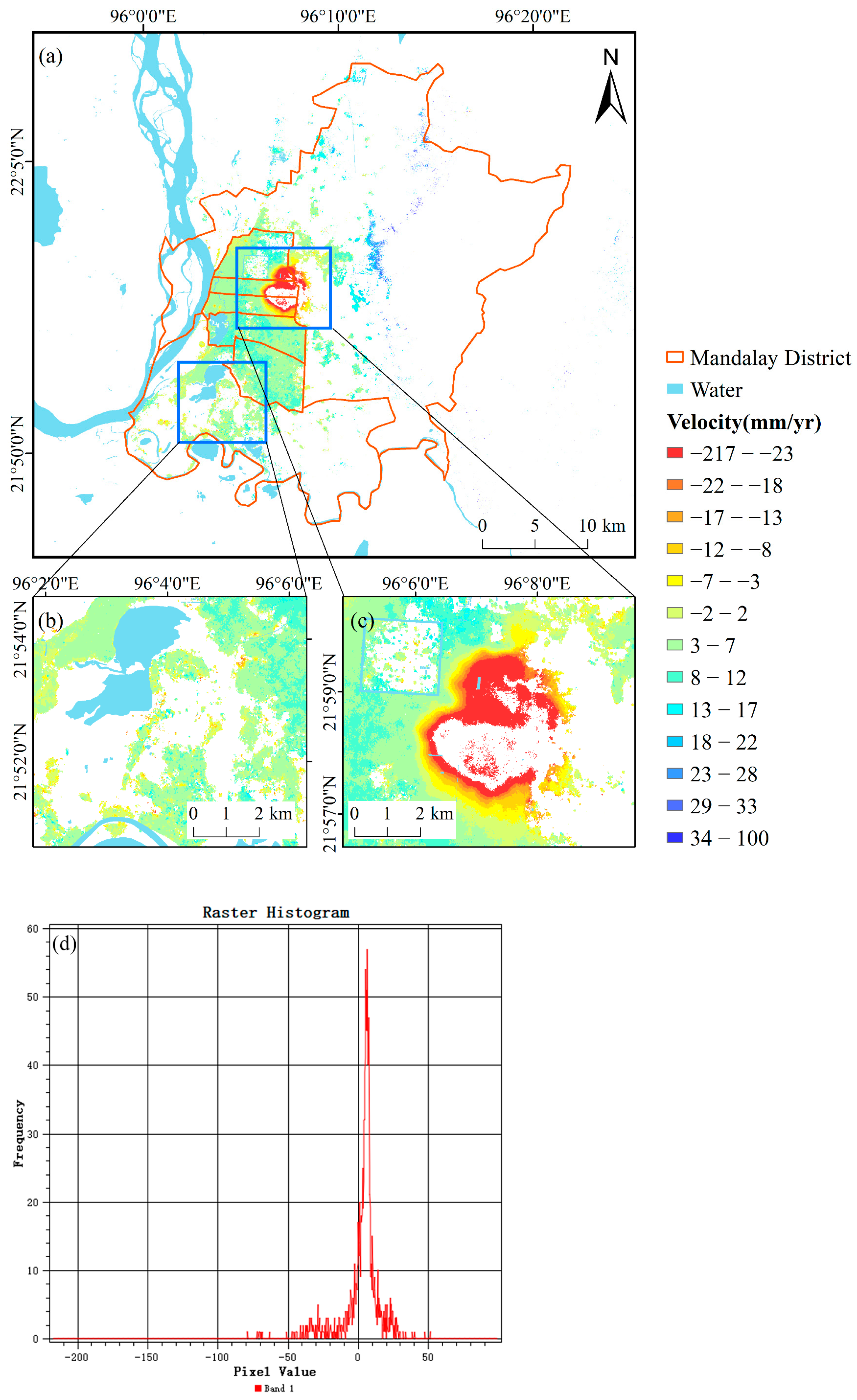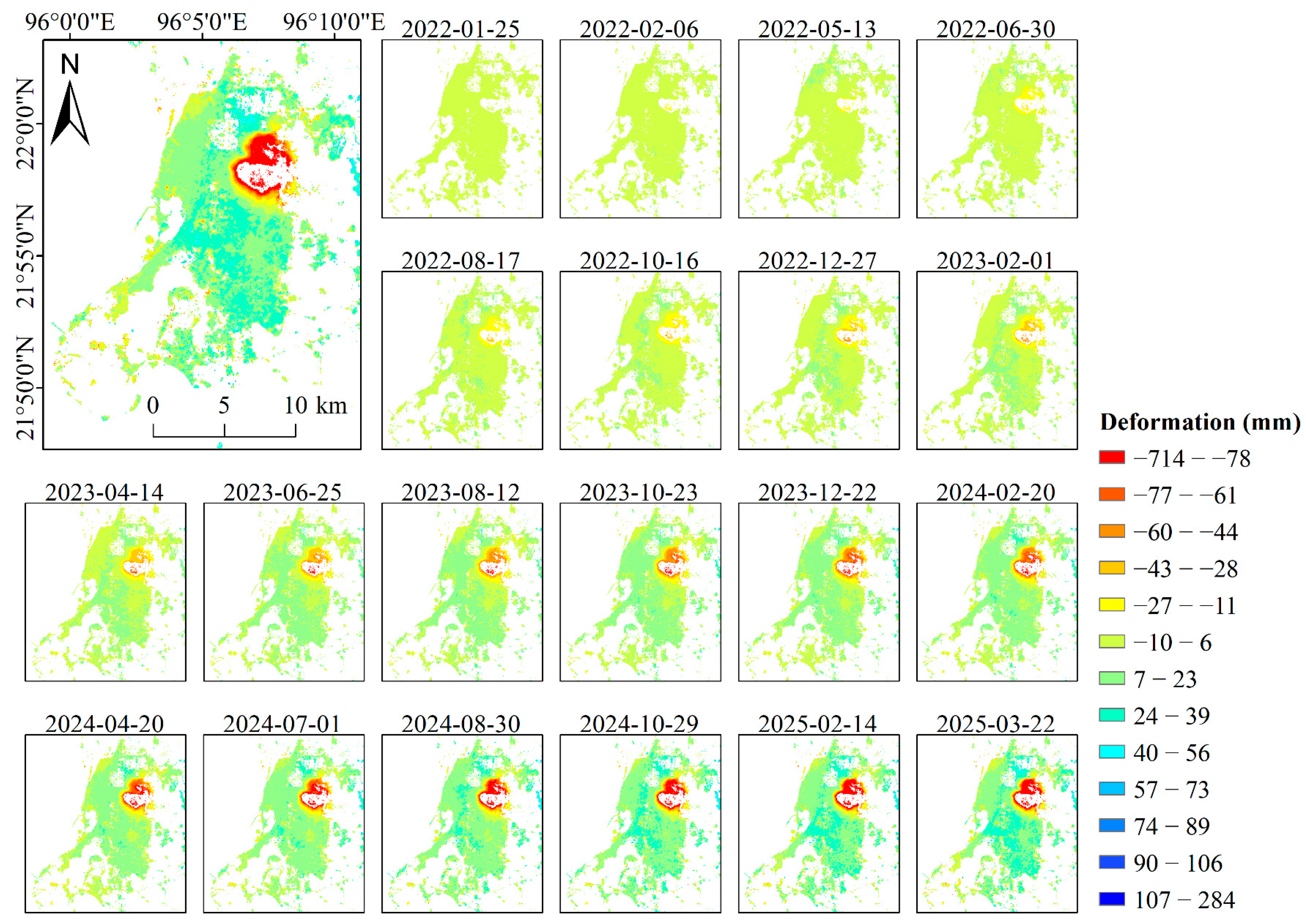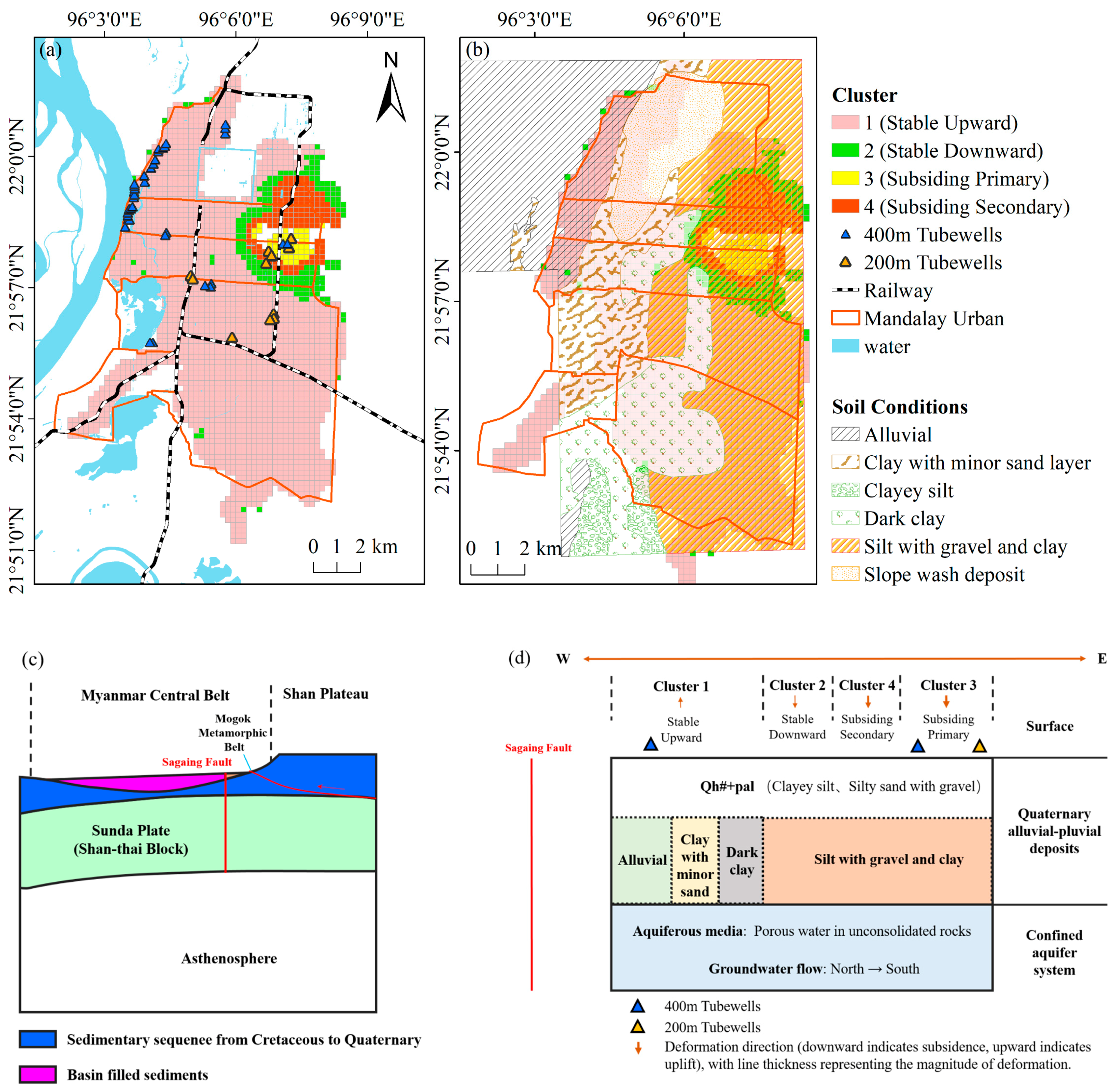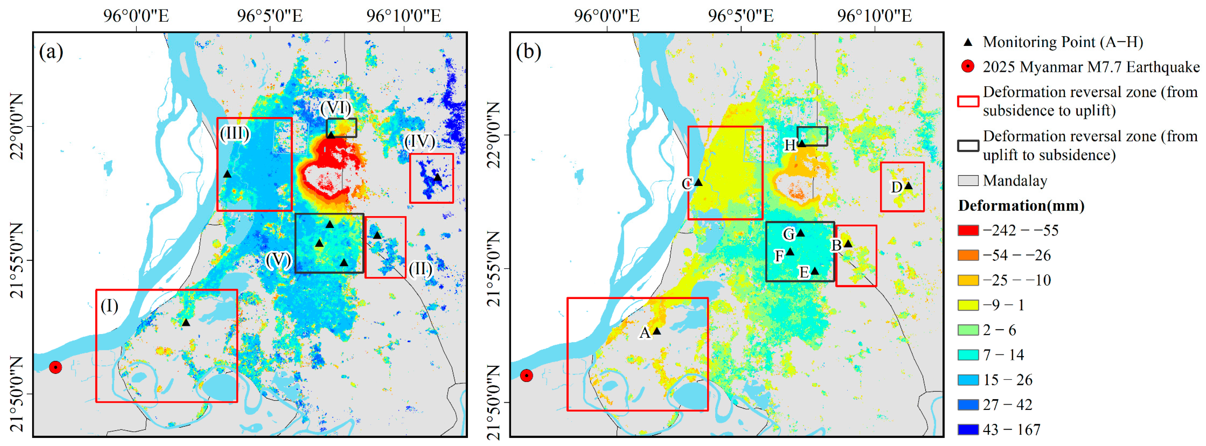 - One of the first comprehensive InSAR-based subsidence maps of Mandalay, Myanmar, revealing the fastest rates up to −217 mm/yr in urban expansion zones.