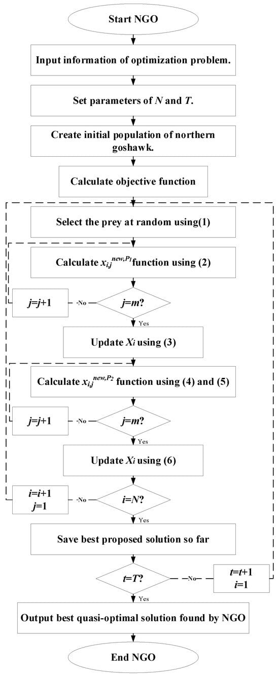 The flowchart of the NGO algorithm is shown in Figure 6.