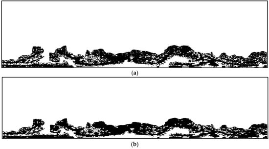 Marine radar images employed the ship-centered Polar coordinate system, where target positions were defined by azimuth angle and distance. The original images were first converted from the Polar coordinate system to the Cartesian coordinate system, with azimuth angle as the horizontal axis and distance as the vertical axis, as shown in Figure 3a. This transformation facilitated global image adjustments while preserving spatial relationships.