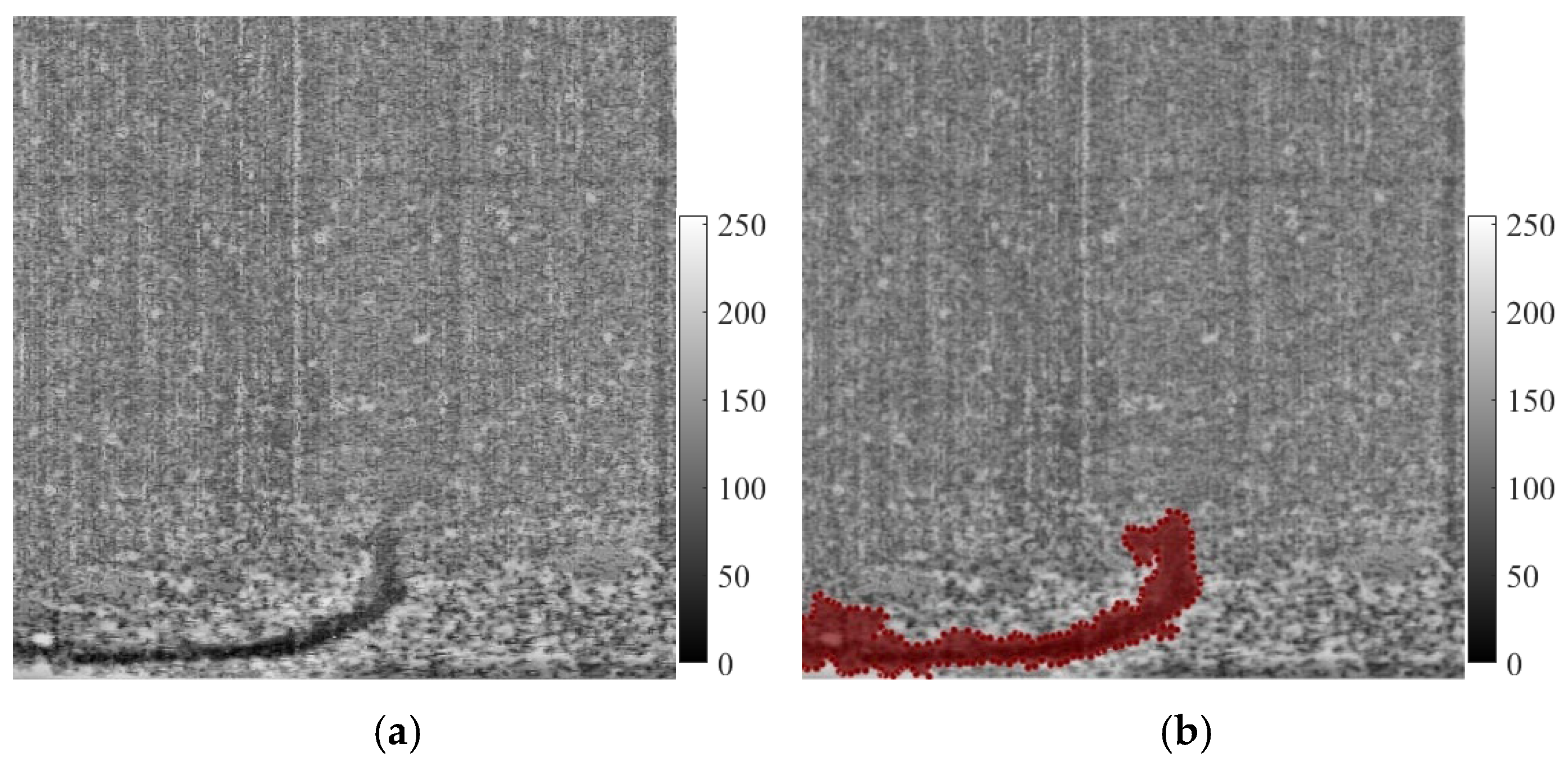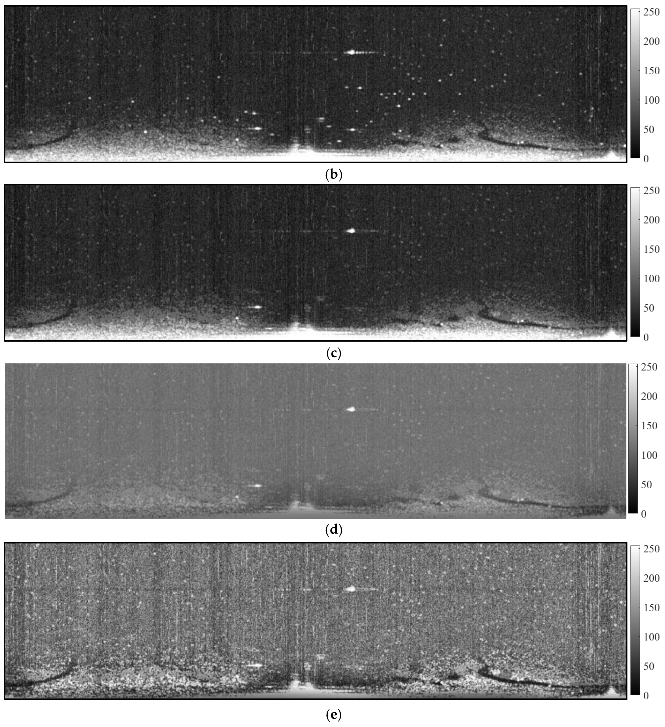 Figure 3d. Finally, a grayscale contrast enhancement algorithm was used to improve the characteristics of oil films, with the final result demonstrated in