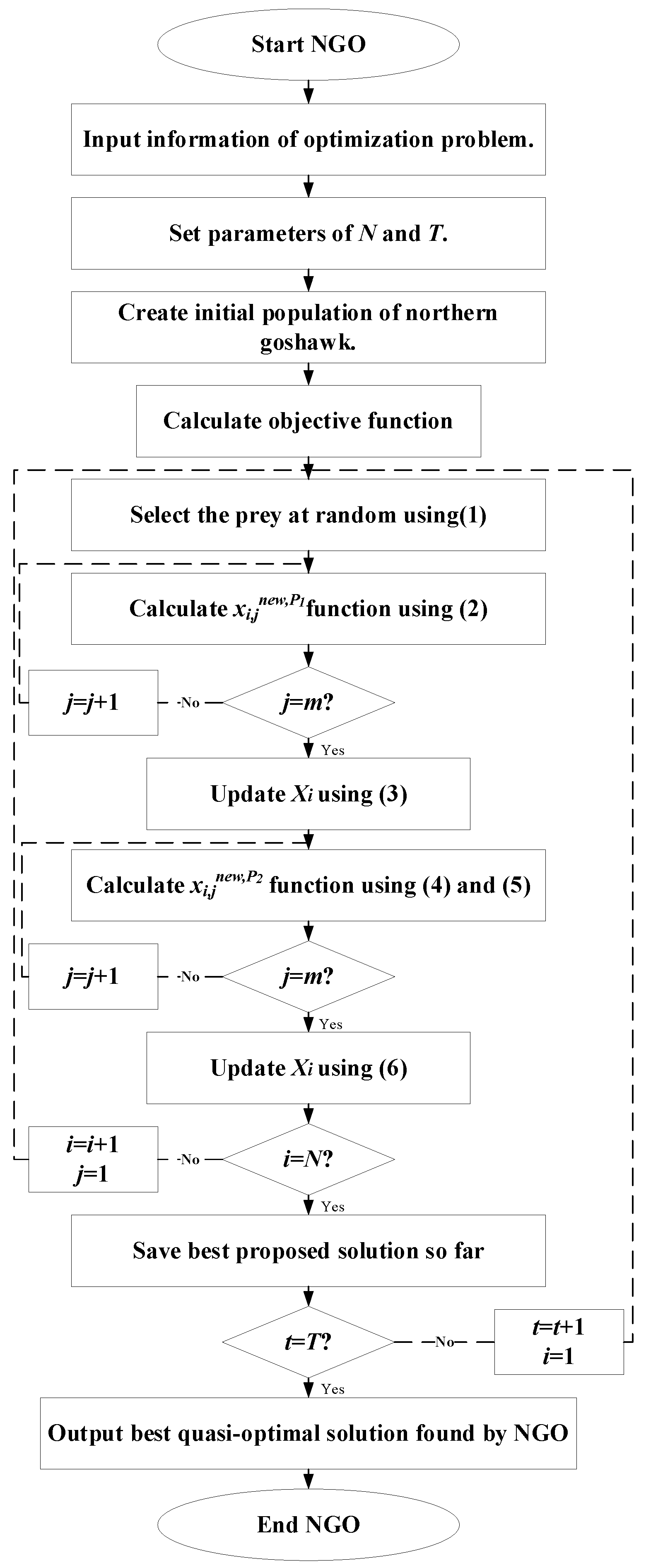 The flowchart of the NGO algorithm is shown in