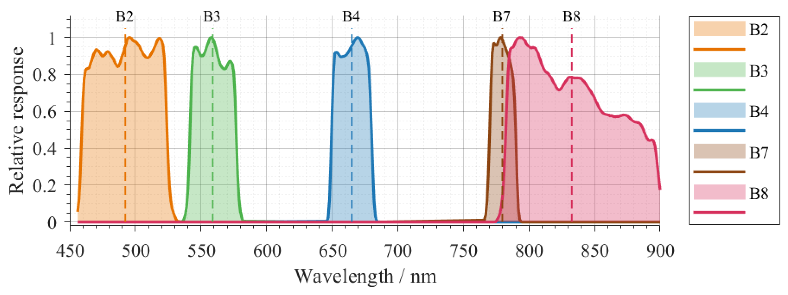 | B7 | Red-edge | 779.7 nm | 20 m (resampled to 10 m) |