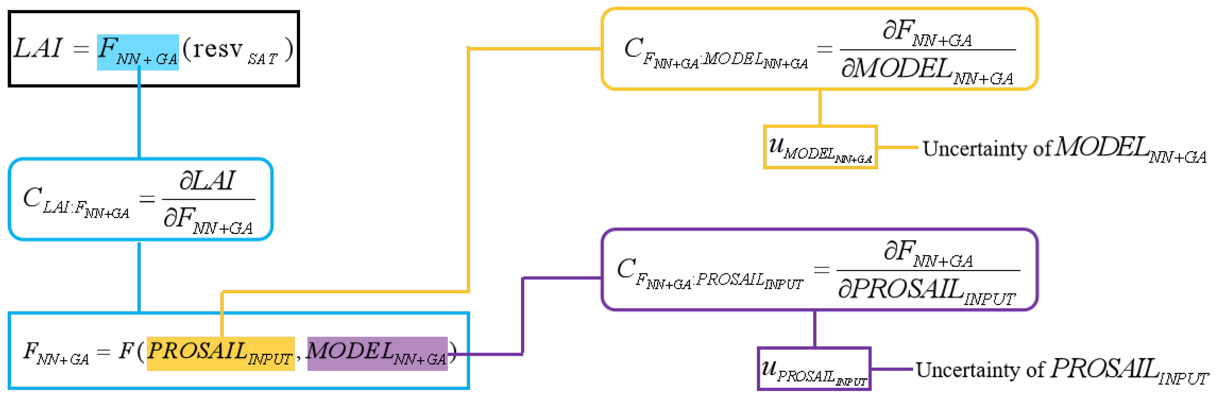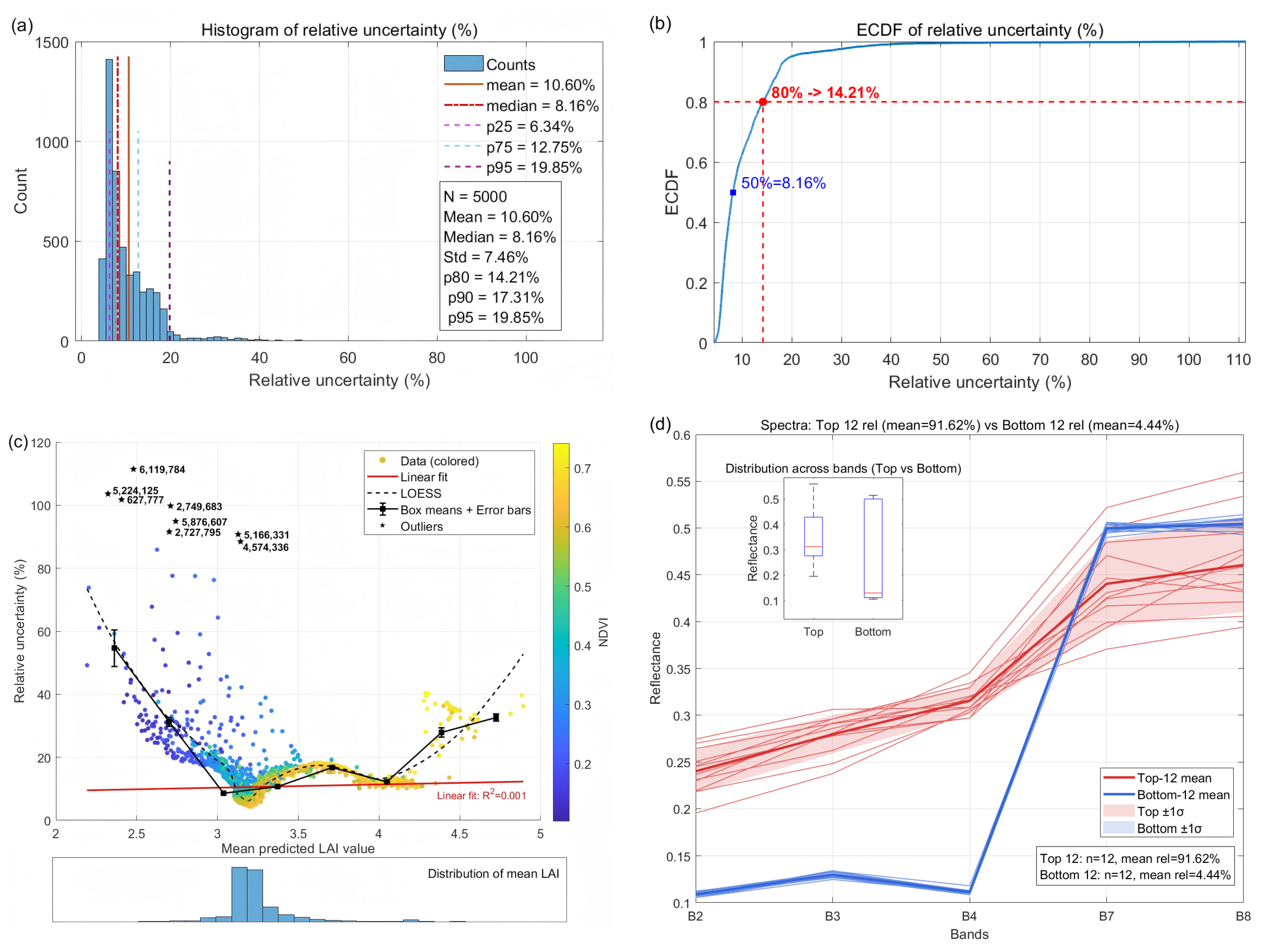 | LAI | B2 (%) | B3 (%) | B4 (%) | B7 (%) | B8 (%) | Input-Parameter Uncertainty (%) | Combined Standard Uncertainty (%) |