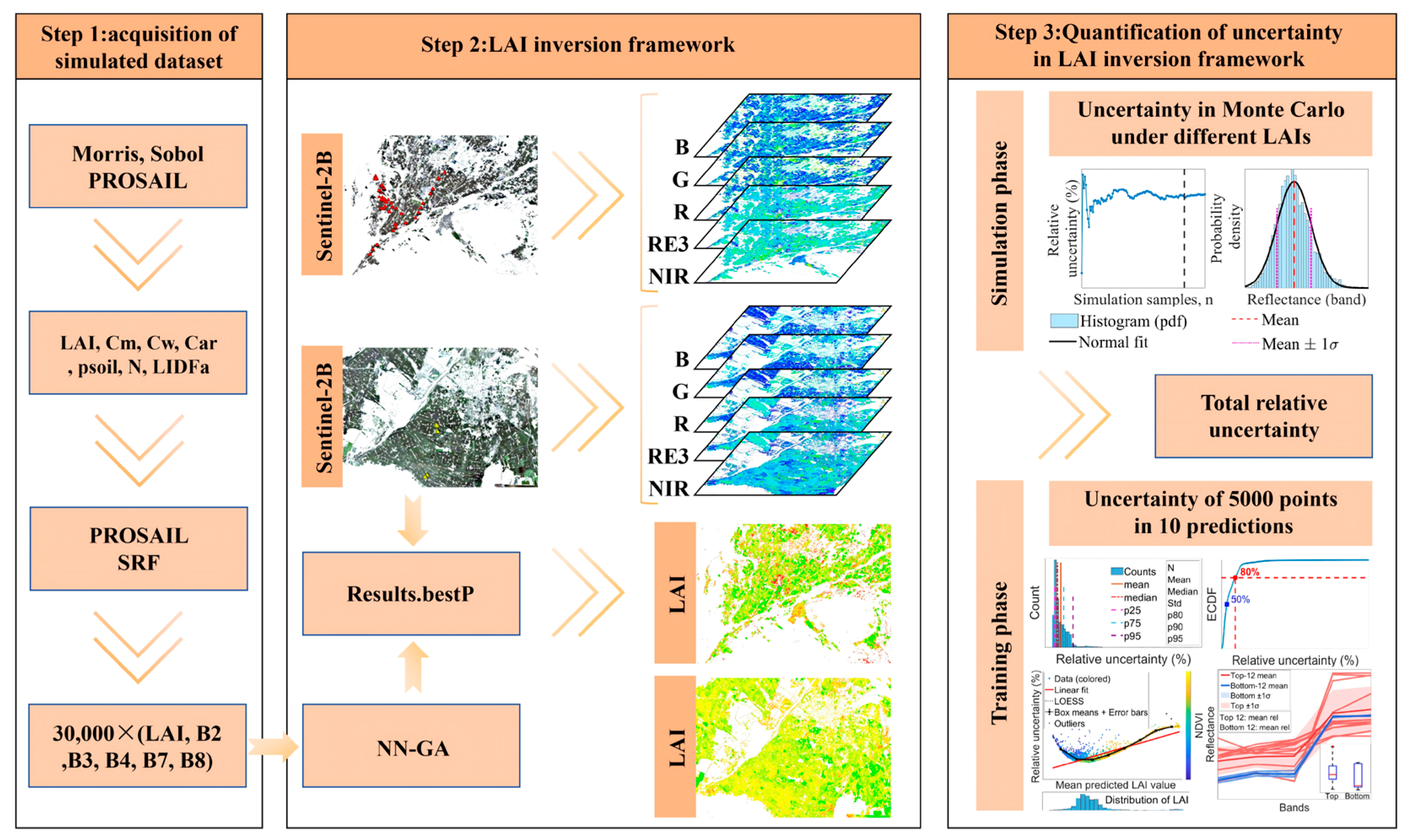 - The framework improves 10 m LAI retrieval accuracy and delivers a reproducible, end-to-end uncertainty decomposition to support confidence-aware agronomic applications.