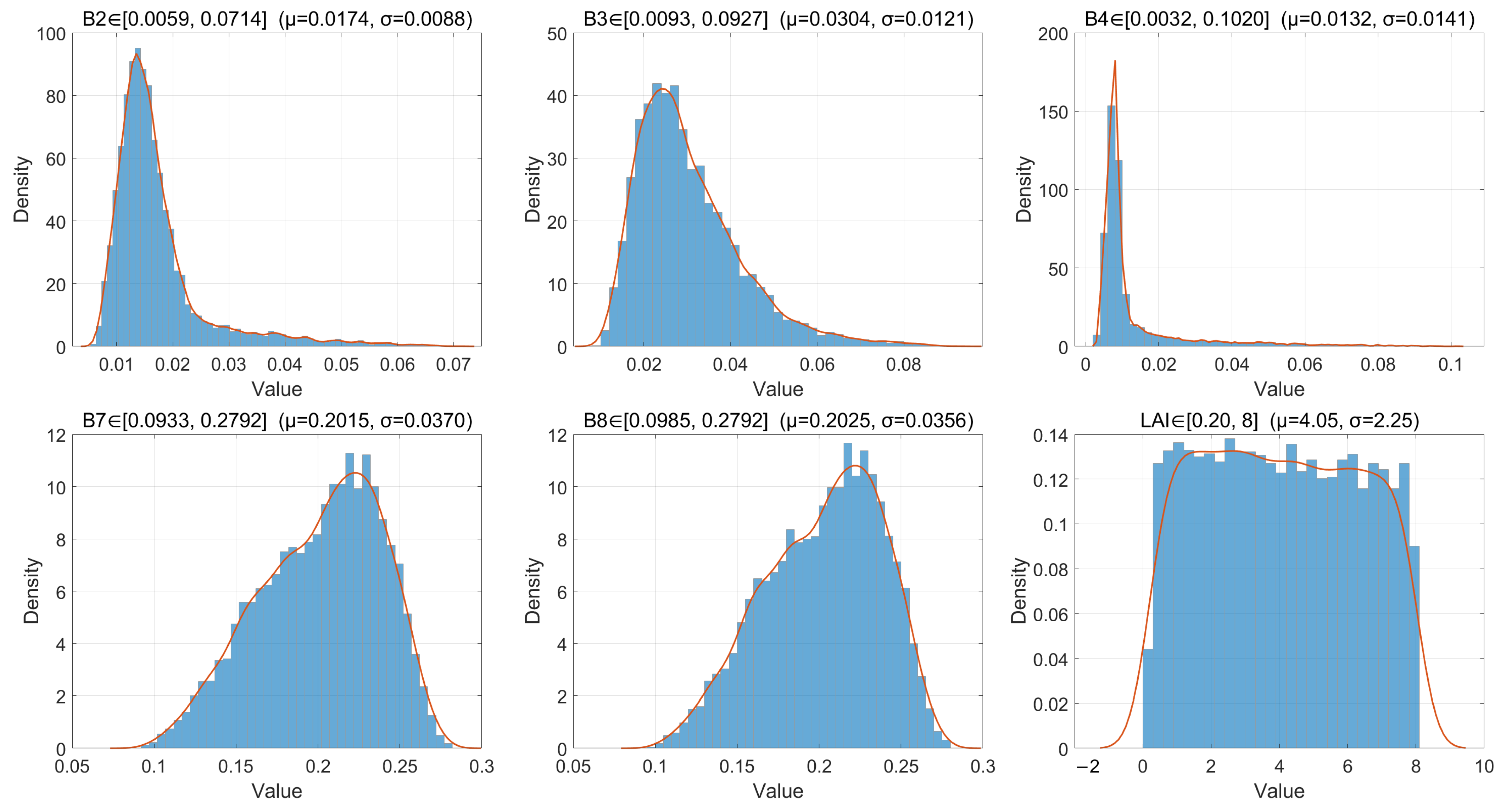 | SAIL | Leaf area index | LAI | m2 m−2 | 0.2–8.0 |